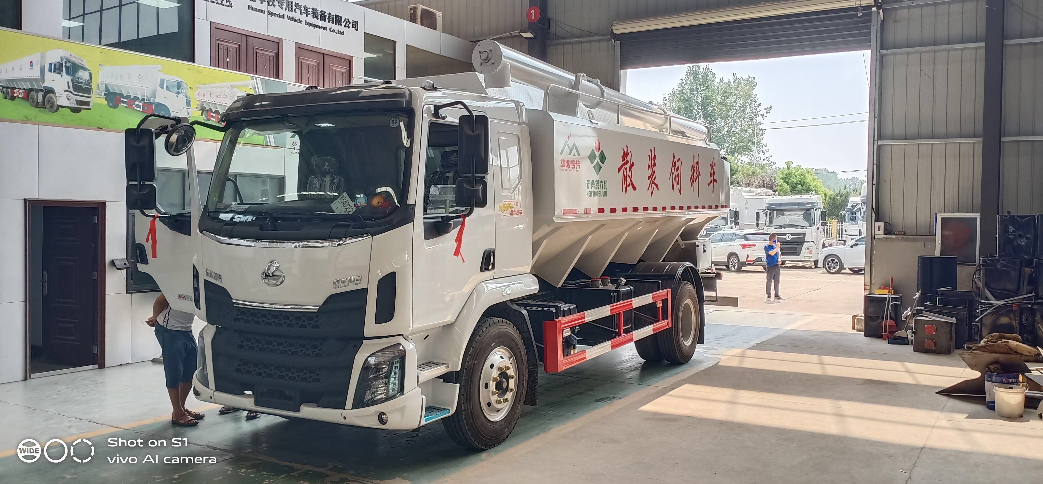 散裝飼料車柳汽10噸王,單橋M3駕駛室 容積20方,可以拉10噸上高速 玉柴200馬力,專攻山路無壓力 4500軸距,轉彎半徑小。