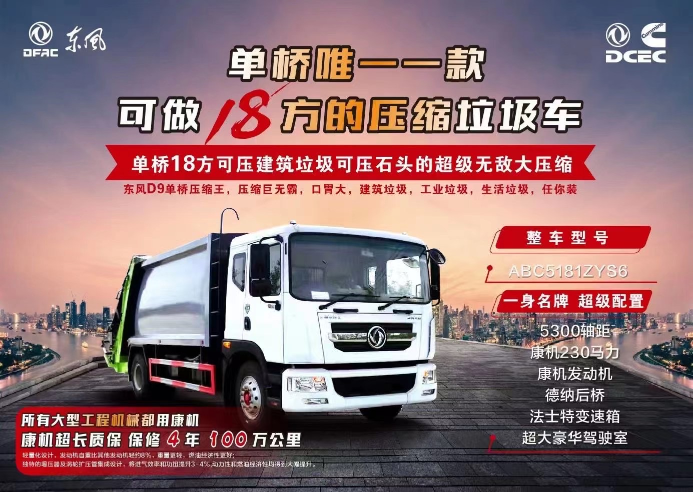 東風D9后單橋18方壓縮垃圾車!史上最具重量級壓縮車查看詳情