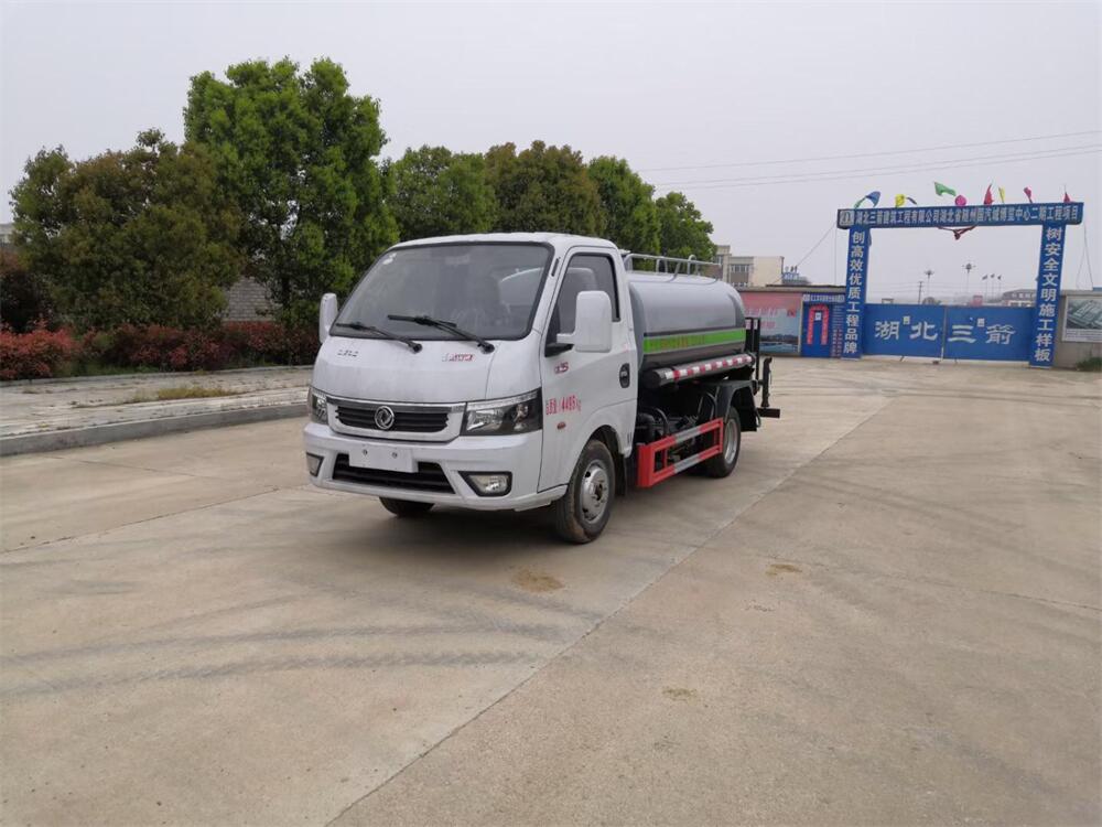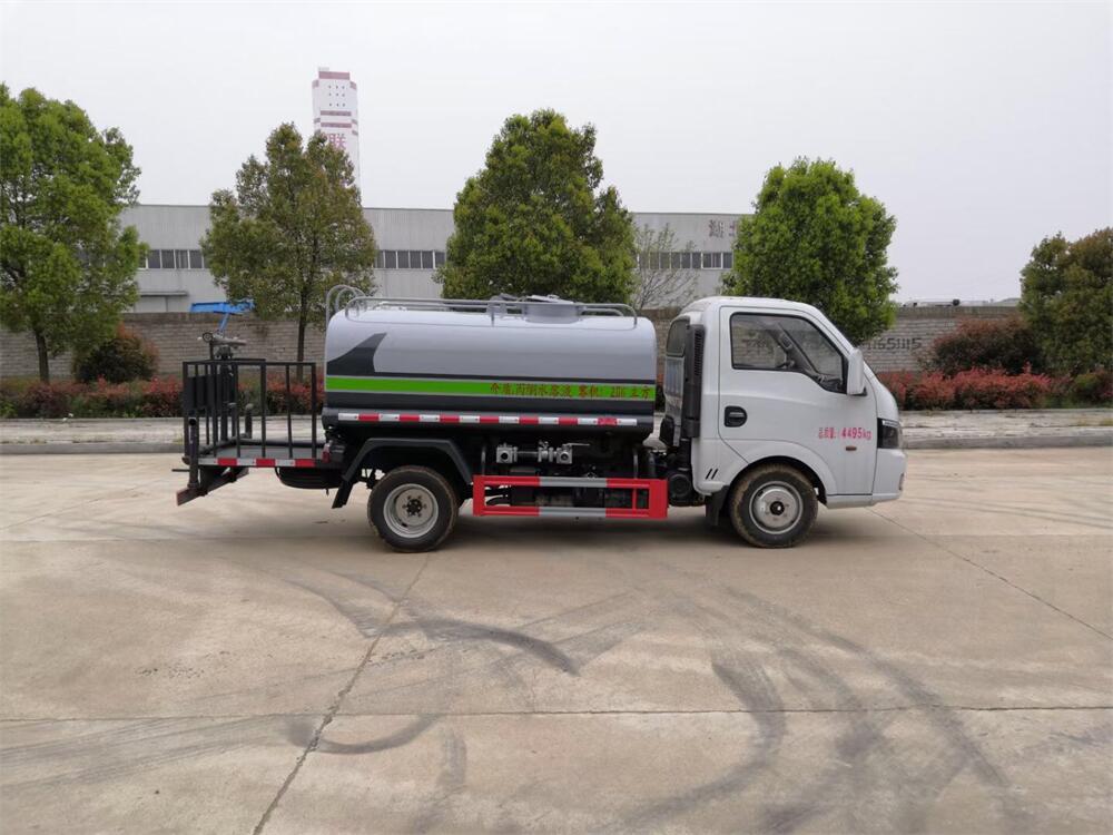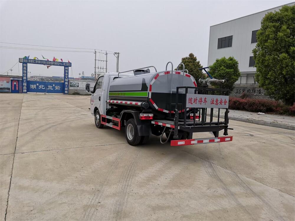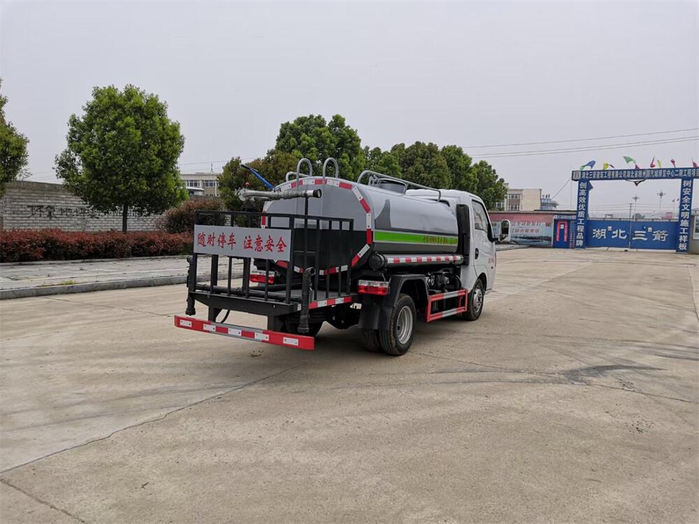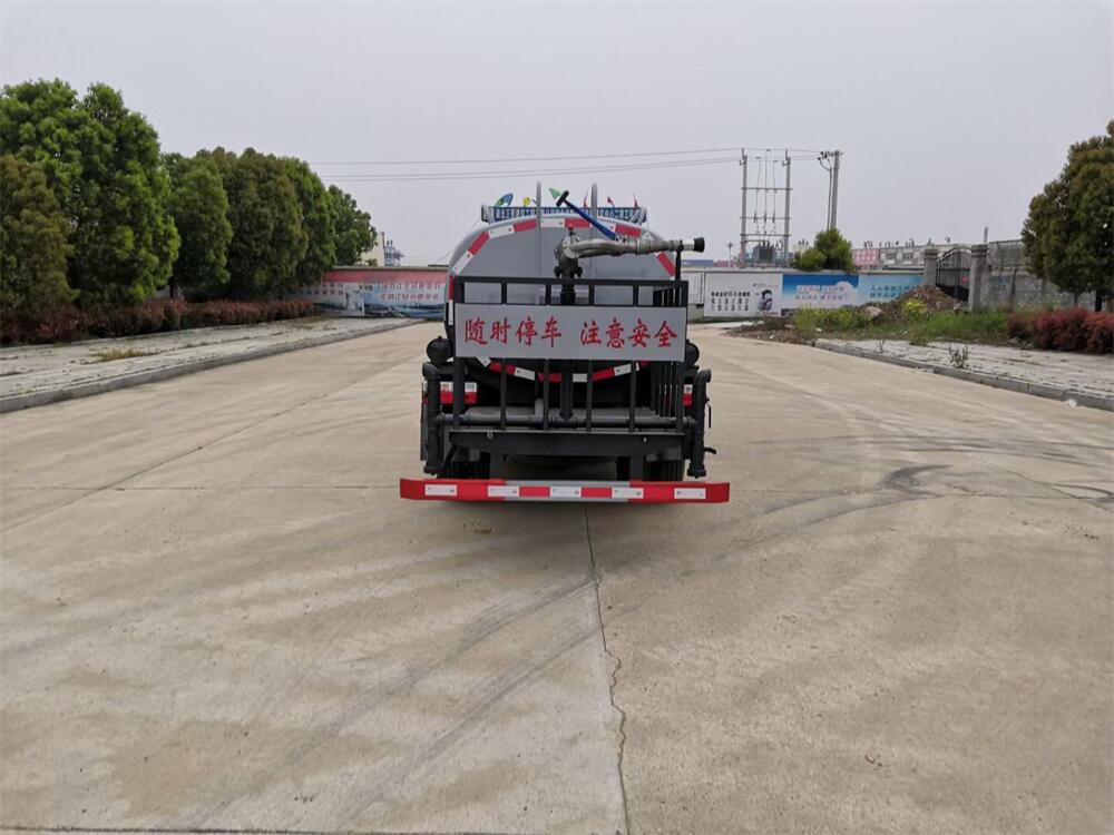 灑水車前裝有鴨形噴嘴或圓頭沖嘴,后面裝有圓柱開灑水噴嘴或蓮蓬頭噴嘴,后部有一工作平臺,裝配有水炮。后部還可裝8個(gè)噴嘴(選裝)。