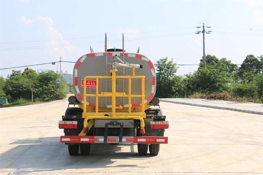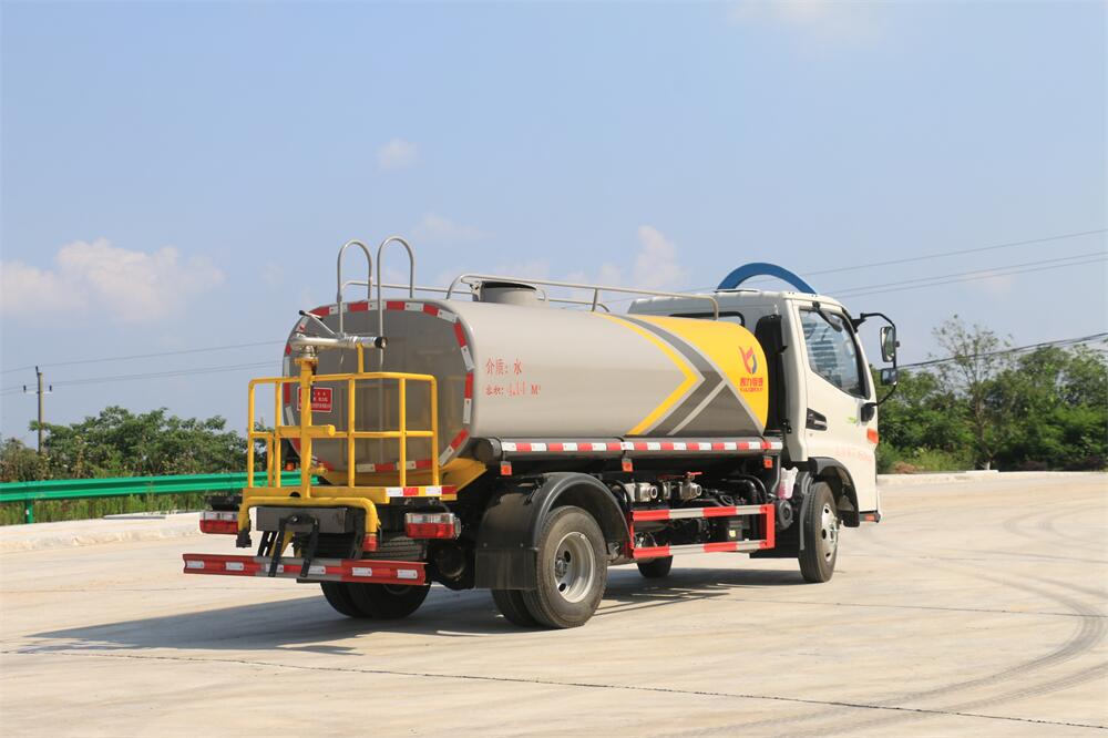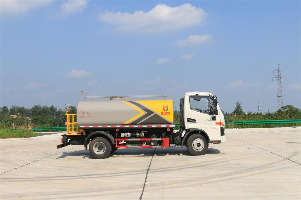 灑水車前裝有鴨形噴嘴或圓頭沖嘴,后面裝有圓柱開灑水噴嘴或蓮蓬頭噴嘴,后部有一工作平臺(tái),裝配有水炮。后部還可裝8個(gè)噴嘴(選裝)。