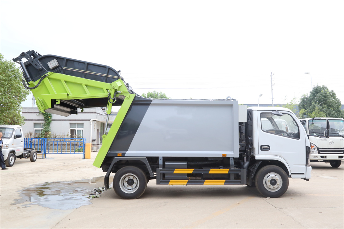 上裝配置:垃圾箱容積:6方,新款平面弧形廂體,廂體材料為武鋼優(yōu)質(zhì)碳鋼,PLC一鍵操作**,手電一體操作模式,兩側(cè)雙電控,帶駕駛室內(nèi)操作,底板支撐加強(qiáng),雙向壓縮,開放式易清潔污水箱。壓縮式垃圾車采用機(jī)電液一體化技術(shù),借助機(jī)、電、液聯(lián)合自動**系統(tǒng)、電腦**、手動操作系統(tǒng),通過填裝器和推鏟等專用裝置,實(shí)現(xiàn)垃圾倒入、壓碎或壓扁、強(qiáng)力裝填,把垃圾擠入車廂并壓實(shí)和推卸,污水全部進(jìn)入污水廂,解決了垃圾運(yùn)輸過程中的二次污染的問題。壓縮式垃圾車具有自動反復(fù)壓縮以及蠕動壓縮功能,壓縮比高、密封性好、裝載量大﹑操作方便、環(huán)保性好﹑整車?yán)霉β矢叩葍?yōu)點(diǎn)。作業(yè)自動化,垃圾收集方式簡便、高效。后翻轉(zhuǎn)機(jī)構(gòu)選裝:1、掛塑料桶式翻轉(zhuǎn)機(jī)構(gòu);2、掛鐵桶式翻轉(zhuǎn)機(jī)構(gòu);3、擺臂式翻轉(zhuǎn)機(jī)構(gòu); 4、簸箕斗式翻轉(zhuǎn)機(jī)構(gòu)。