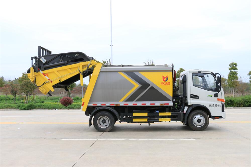 上裝配置:垃圾箱容積:6方,新款平面弧形廂體,廂體材料為武鋼優(yōu)質(zhì)碳鋼,PLC一鍵操作**,手電一體操作模式,兩側(cè)雙電控,帶駕駛室內(nèi)操作,底板支撐加強(qiáng),雙向壓縮,開放式易清潔污水箱。壓縮式垃圾車采用機(jī)電液一體化技術(shù),借助機(jī)、電、液聯(lián)合自動(dòng)**系統(tǒng)、電腦**、手動(dòng)操作系統(tǒng),通過填裝器和推鏟等專用裝置,實(shí)現(xiàn)垃圾倒入、壓碎或壓扁、強(qiáng)力裝填,把垃圾擠入車廂并壓實(shí)和推卸,污水全部進(jìn)入污水廂,解決了垃圾運(yùn)輸過程中的二次污染的問題。壓縮式垃圾車具有自動(dòng)反復(fù)壓縮以及蠕動(dòng)壓縮功能,壓縮比高、密封性好、裝載量大﹑操作方便、環(huán)保性好﹑整車?yán)霉β矢叩葍?yōu)點(diǎn)。作業(yè)自動(dòng)化,垃圾收集方式簡(jiǎn)便、高效。后翻轉(zhuǎn)機(jī)構(gòu)選裝:1、掛塑料桶式翻轉(zhuǎn)機(jī)構(gòu);2、掛鐵桶式翻轉(zhuǎn)機(jī)構(gòu);3、擺臂式翻轉(zhuǎn)機(jī)構(gòu); 4、簸箕斗式翻轉(zhuǎn)機(jī)構(gòu)。