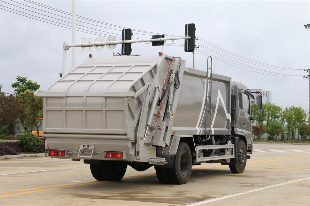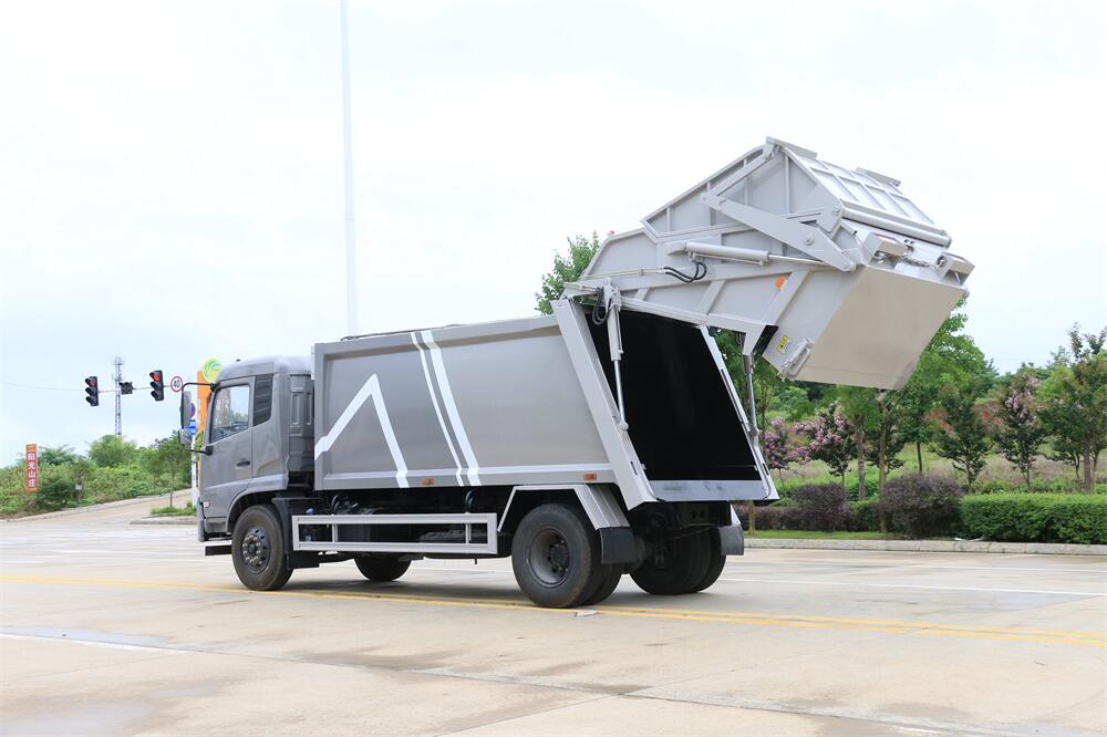 上裝配置:垃圾箱容積:14方,新款平面弧形廂體,廂體材料為武鋼優(yōu)質(zhì)碳鋼,PLC一鍵操作**,手電一體操作模式,兩側(cè)雙電控,帶駕駛室內(nèi)操作,底板支撐加強(qiáng),雙向壓縮,開放式易清潔污水箱。壓縮式垃圾車采用機(jī)電液一體化技術(shù),借助機(jī)、電、液聯(lián)合自動(dòng)**系統(tǒng)、電腦**、手動(dòng)操作系統(tǒng),通過填裝器和推鏟等專用裝置,實(shí)現(xiàn)垃圾倒入、壓碎或壓扁、強(qiáng)力裝填,把垃圾擠入車廂并壓實(shí)和推卸,污水全部進(jìn)入污水廂,解決了垃圾運(yùn)輸過程中的二次污染的問題。壓縮式垃圾車具有自動(dòng)反復(fù)壓縮以及蠕動(dòng)壓縮功能,壓縮比高、密封性好、裝載量大﹑操作方便、環(huán)保性好﹑整車?yán)霉β矢叩葍?yōu)點(diǎn)。作業(yè)自動(dòng)化,垃圾收集方式簡便、高效。后翻轉(zhuǎn)機(jī)構(gòu)選裝:1、掛塑料桶式翻轉(zhuǎn)機(jī)構(gòu);2、掛鐵桶式翻轉(zhuǎn)機(jī)構(gòu);3、擺臂式翻轉(zhuǎn)機(jī)構(gòu); 4、簸箕斗式翻轉(zhuǎn)機(jī)構(gòu)。