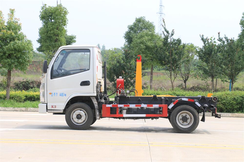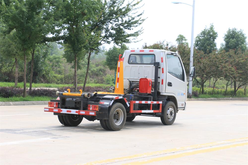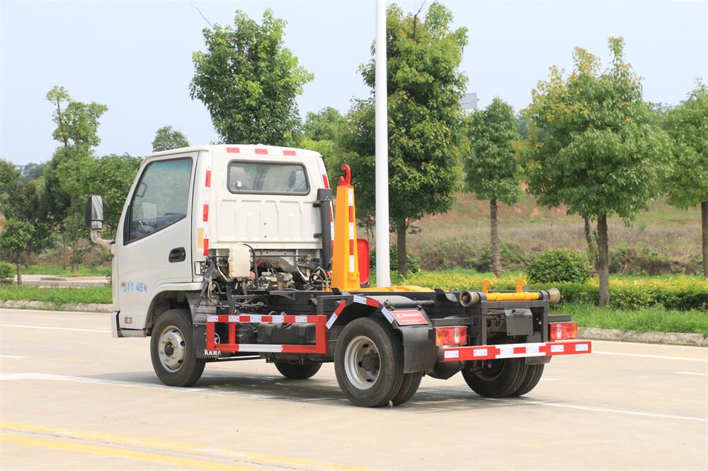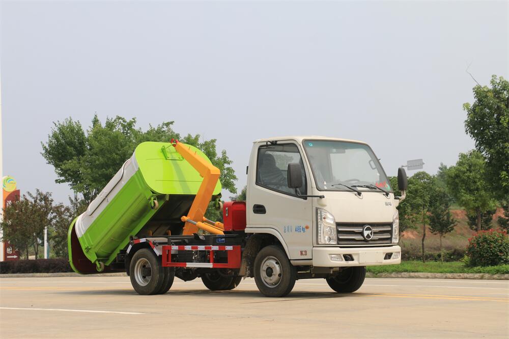 勾臂式垃圾車(車廂可卸式垃圾車)介紹: 車廂可卸式垃圾車又叫拉臂式垃圾車,是一種采用高新設(shè)計可伸縮的鉤臂,實現(xiàn)垃圾廂的二次吊裝,自吊上放下,可自行傾倒垃圾的環(huán)衛(wèi)設(shè)備。 拉臂式垃圾車結(jié)構(gòu)簡單,操作穩(wěn)定方便,裝卸效率高,機械化程度高,節(jié)省人力。鉤臂垃圾車一車可帶多個垃圾廂,在裝卸的運輸過程中可有效地避免二次污染。 拉臂垃圾車采用高新設(shè)計可擺動的鉤臂,垃圾箱由框架、開啟油缸、滑輪、后門和若干加強框架與鋼板焊接而成。調(diào)換貨廂快捷方便,貨廂上帶蓋(倒垃圾時可翻開),鉤臂垃圾車?yán)鴰w可選用碳鋼、不銹鋼材質(zhì)、內(nèi)部采取環(huán)氧樹脂防腐處理,改裝部分與原車底盤為可分離式,維修方便且保持了原車的機動性及行駛性能。