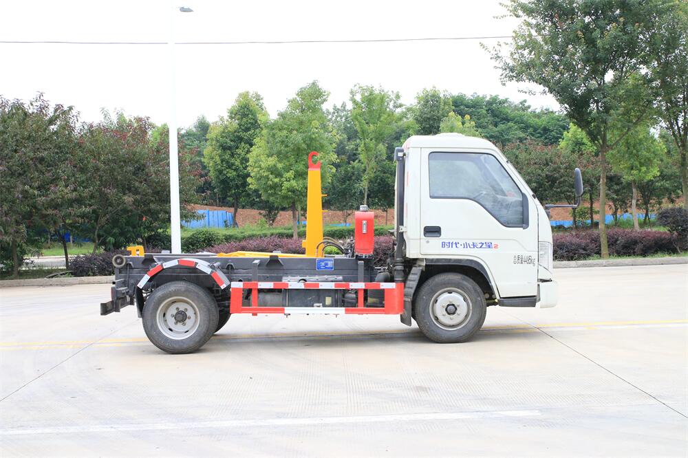勾臂式垃圾車(chē)(車(chē)廂可卸式垃圾車(chē))介紹: 車(chē)廂可卸式垃圾車(chē)又叫拉臂式垃圾車(chē),是一種采用高新設(shè)計(jì)可伸縮的鉤臂,實(shí)現(xiàn)垃圾廂的二次吊裝,自吊上放下,可自行傾倒垃圾的環(huán)衛(wèi)設(shè)備。 拉臂式垃圾車(chē)結(jié)構(gòu)簡(jiǎn)單,操作穩(wěn)定方便,裝卸效率高,機(jī)械化程度高,節(jié)省人力。鉤臂垃圾車(chē)一車(chē)可帶多個(gè)垃圾廂,在裝卸的運(yùn)輸過(guò)程中可有效地避免二次污染。 拉臂垃圾車(chē)采用高新設(shè)計(jì)可擺動(dòng)的鉤臂,垃圾箱由框架、開(kāi)啟油缸、滑輪、后門(mén)和若干加強(qiáng)框架與鋼板焊接而成。調(diào)換貨廂快捷方便,貨廂上帶蓋(倒垃圾時(shí)可翻開(kāi)),鉤臂垃圾車(chē)?yán)鴰w可選用碳鋼、不銹鋼材質(zhì)、內(nèi)部采取環(huán)氧樹(shù)脂防腐處理,改裝部分與原車(chē)底盤(pán)為可分離式,維修方便且保持了原車(chē)的機(jī)動(dòng)性及行駛性能。