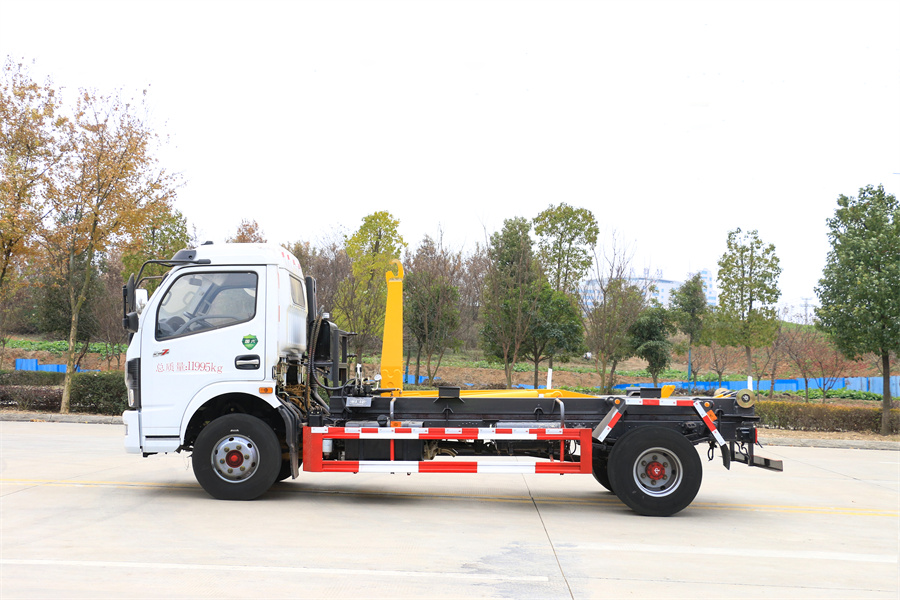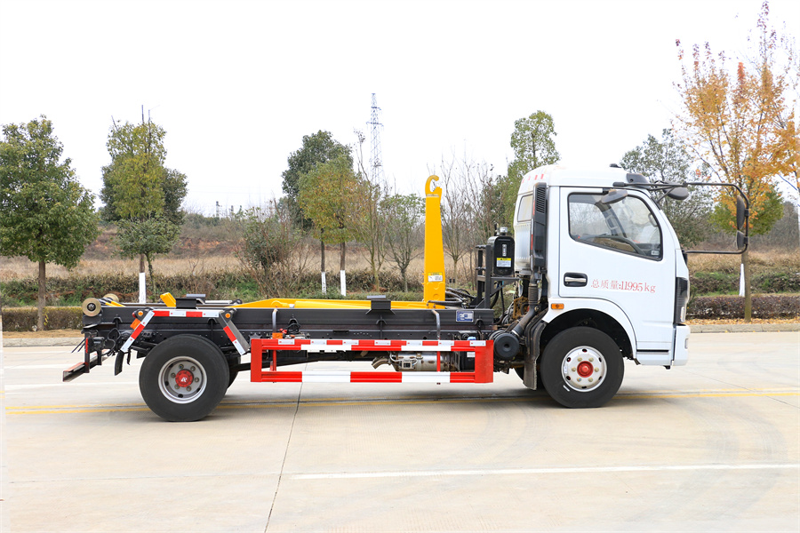勾臂式垃圾車(車廂可卸式垃圾車)介紹: 車廂可卸式垃圾車又叫拉臂式垃圾車,是一種采用高新設(shè)計(jì)可伸縮的鉤臂,實(shí)現(xiàn)垃圾廂的二次吊裝,自吊上放下,可自行傾倒垃圾的環(huán)衛(wèi)設(shè)備。 拉臂式垃圾車結(jié)構(gòu)簡單,操作穩(wěn)定方便,裝卸效率高,機(jī)械化程度高,節(jié)省人力。鉤臂垃圾車一車可帶多個(gè)垃圾廂,在裝卸的運(yùn)輸過程中可有效地避免二次污染。 拉臂垃圾車采用高新設(shè)計(jì)可擺動(dòng)的鉤臂,垃圾箱由框架、開啟油缸、滑輪、后門和若干加強(qiáng)框架與鋼板焊接而成。調(diào)換貨廂快捷方便,貨廂上帶蓋(倒垃圾時(shí)可翻開),鉤臂垃圾車?yán)鴰w可選用碳鋼、不銹鋼材質(zhì)、內(nèi)部采取環(huán)氧樹脂防腐處理,改裝部分與原車底盤為可分離式,維修方便且保持了原車的機(jī)動(dòng)性及行駛性能。