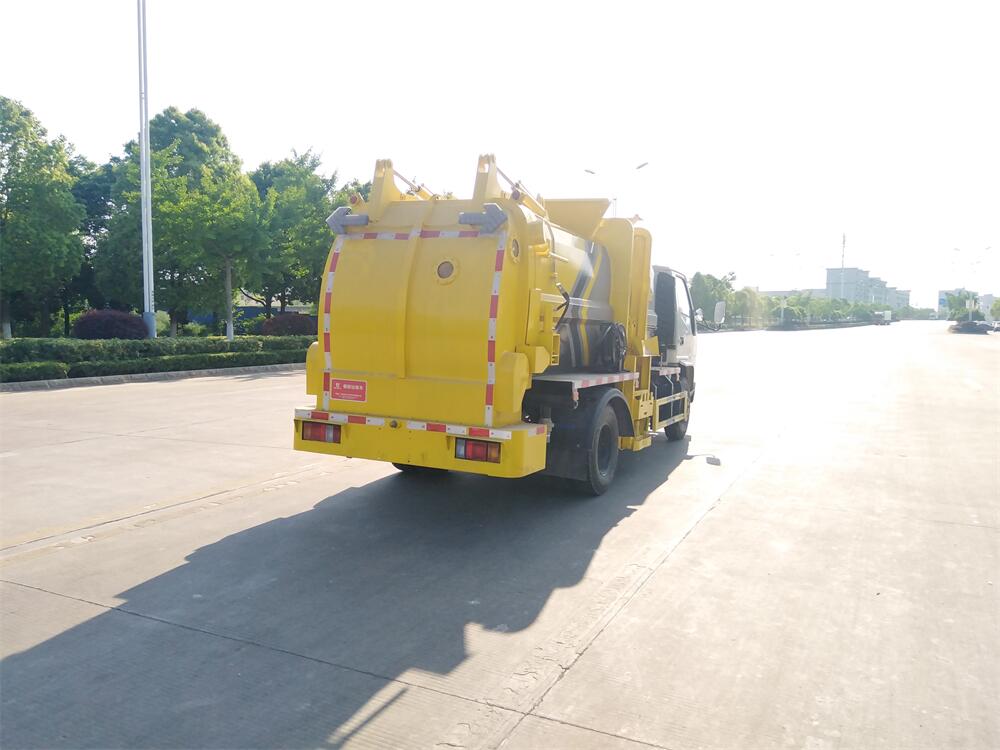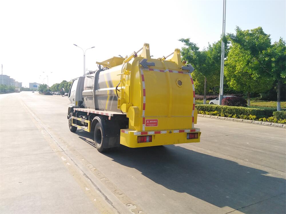 上裝配置:罐體容積6m3,配備120L/240L掛桶提升翻轉(zhuǎn)機(jī)構(gòu),液壓系統(tǒng),后蓋液壓鎖緊開(kāi)啟,罐體可以舉升自卸,尾部帶自流閥;用于運(yùn)輸液態(tài)垃圾,其特點(diǎn)操作簡(jiǎn)單,密封性好,無(wú)泄漏,無(wú)異味;可選裝固液分離功能,推板擠壓功能,常用于餐館的垃圾轉(zhuǎn)運(yùn)處理。