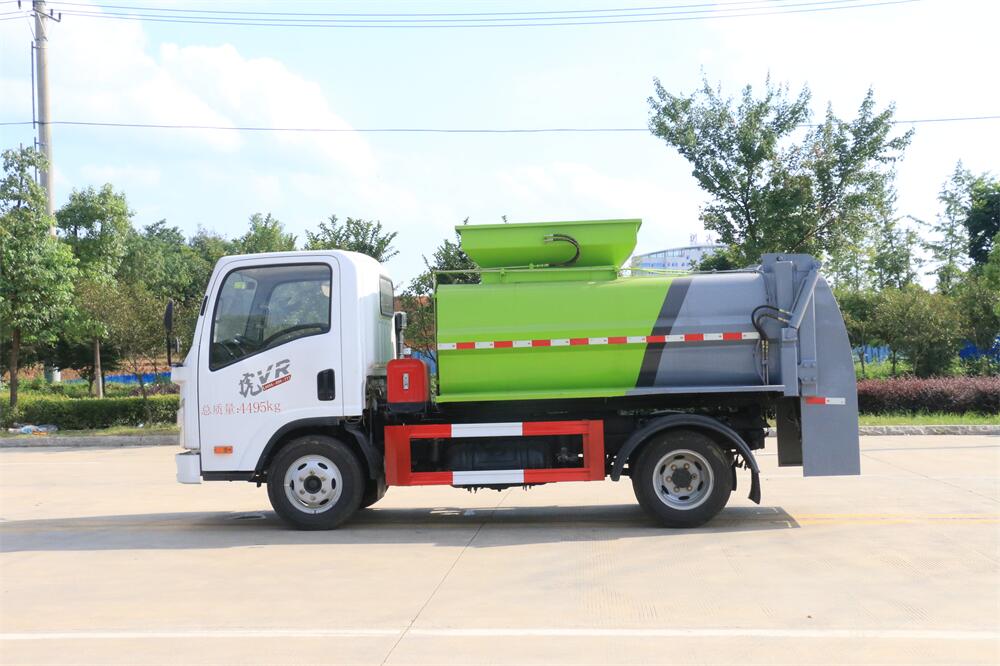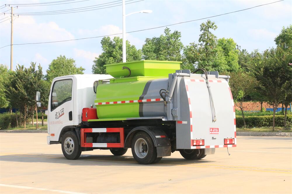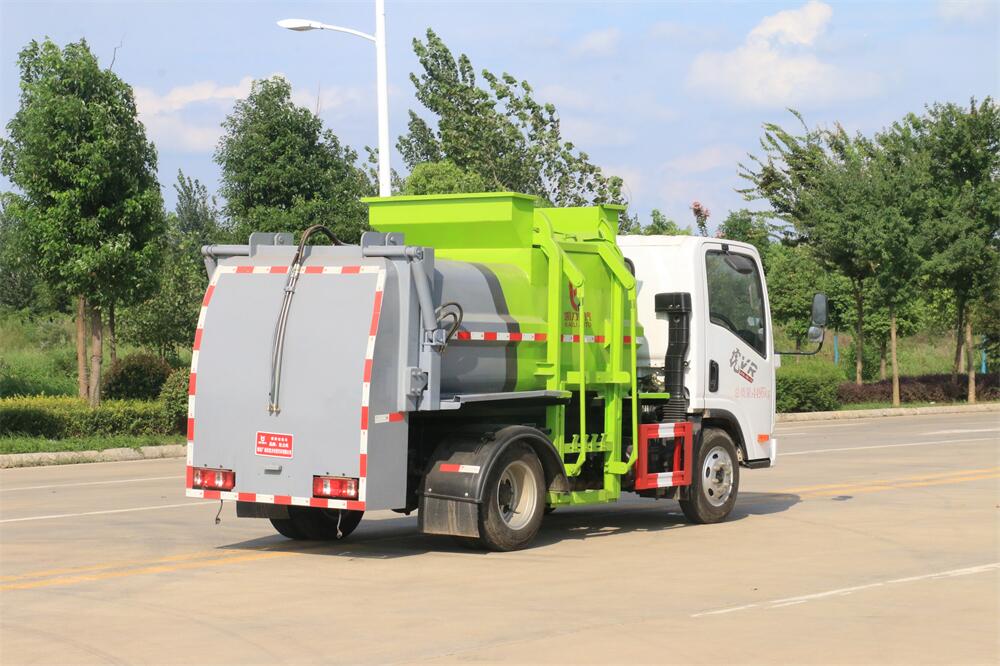 上裝配置:罐體容積6m3,配備120L/240L掛桶提升翻轉(zhuǎn)機(jī)構(gòu),液壓系統(tǒng),后蓋液壓鎖緊開(kāi)啟,罐體可以舉升自卸,尾部帶自流閥;用于運(yùn)輸液態(tài)垃圾,其特點(diǎn)操作簡(jiǎn)單,密封性好,無(wú)泄漏,無(wú)異味;可選裝固液分離功能,推板擠壓功能,常用于餐館的垃圾轉(zhuǎn)運(yùn)處理。
