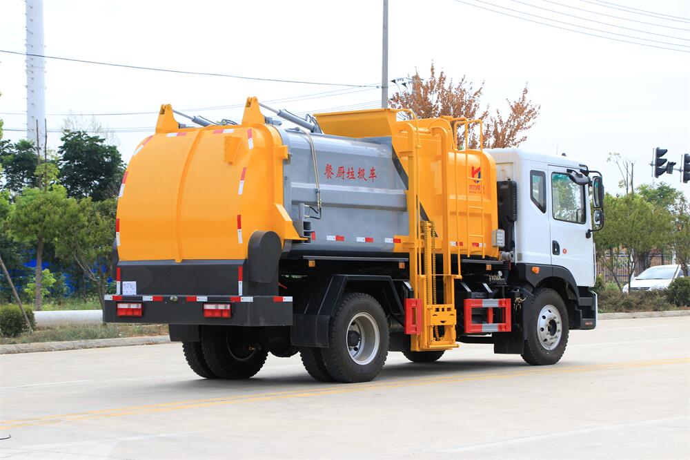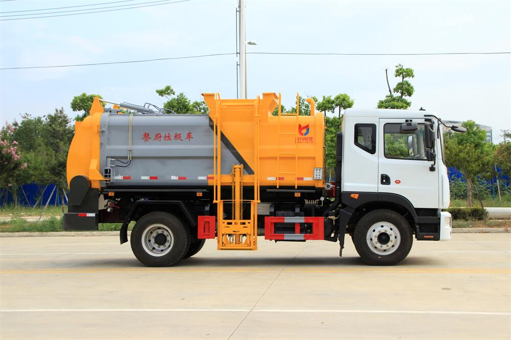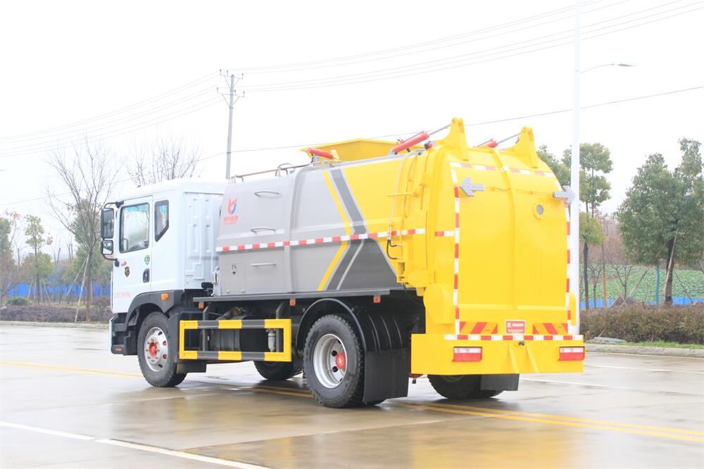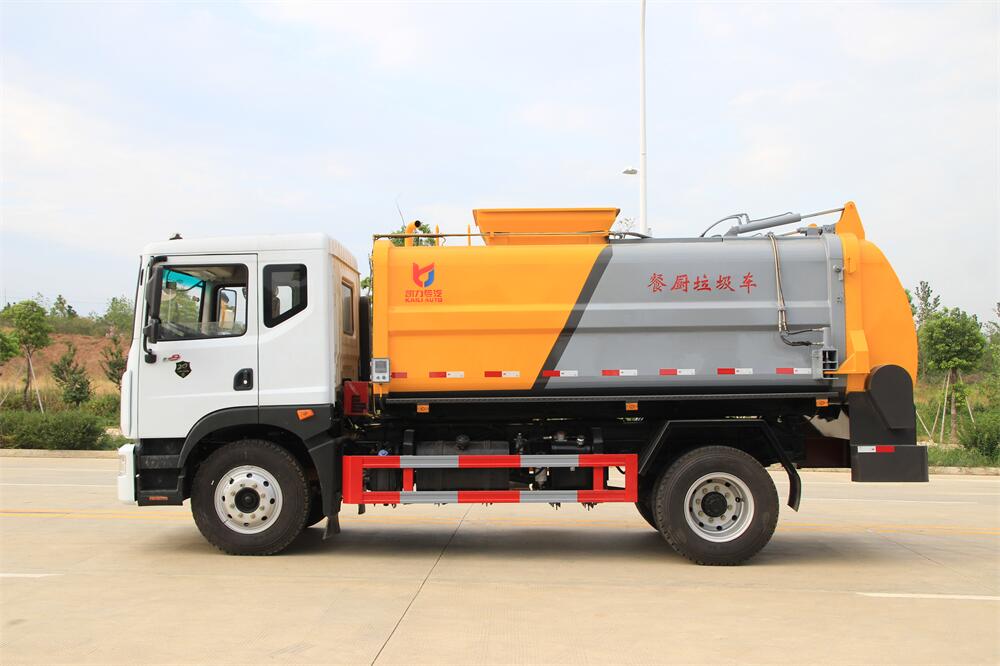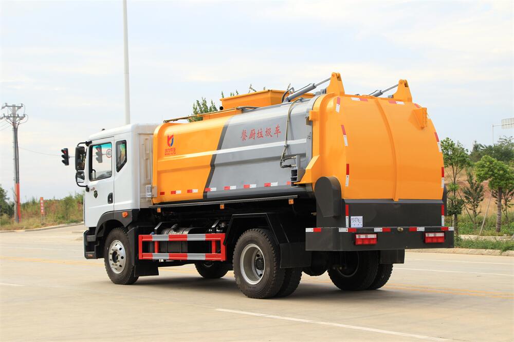 上裝配置:罐體容積10m3,配備120L/240L掛桶提升翻轉(zhuǎn)機(jī)構(gòu),液壓系統(tǒng),后蓋液壓鎖緊開啟,罐體可以舉升自卸,尾部帶自流閥;用于運(yùn)輸液態(tài)垃圾,其特點(diǎn)操作簡(jiǎn)單,密封性好,無泄漏,無異味;可選裝固液分離功能,推板擠壓功能,常用于餐館的垃圾轉(zhuǎn)運(yùn)處理。