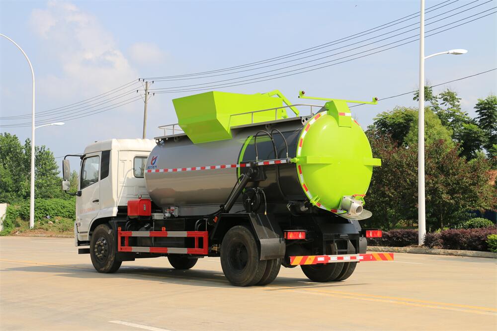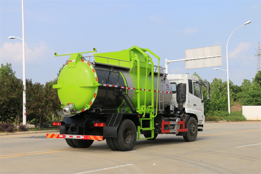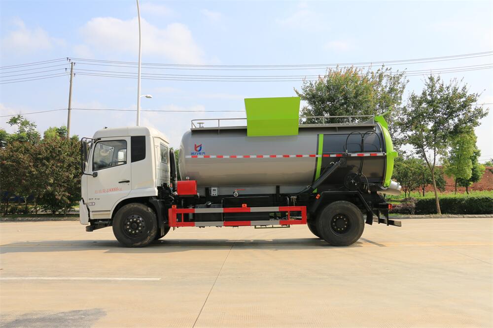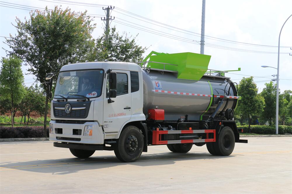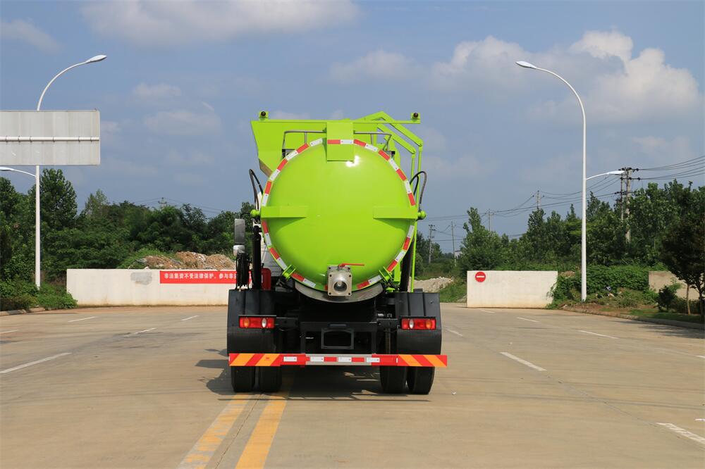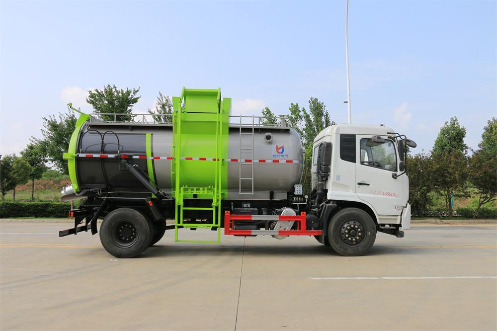 上裝配置:罐體容積12m3,配備120L/240L掛桶提升翻轉(zhuǎn)機(jī)構(gòu),液壓系統(tǒng),后蓋液壓鎖緊開啟,罐體可以舉升自卸,尾部帶自流閥;用于運(yùn)輸液態(tài)垃圾,其特點(diǎn)操作簡(jiǎn)單,密封性好,無(wú)泄漏,無(wú)異味;可選裝固液分離功能,推板擠壓功能,常用于餐館的垃圾轉(zhuǎn)運(yùn)處理。