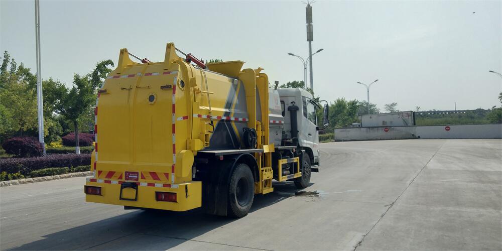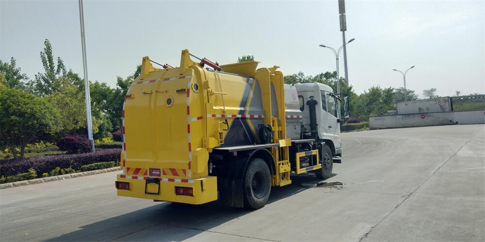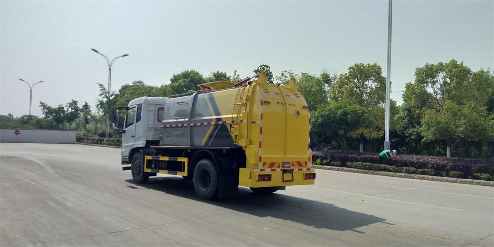 上裝配置:罐體容積12m3,配備120L/240L掛桶提升翻轉(zhuǎn)機(jī)構(gòu),液壓系統(tǒng),后蓋液壓鎖緊開(kāi)啟,罐體可以舉升自卸,尾部帶自流閥;用于運(yùn)輸液態(tài)垃圾,其特點(diǎn)操作簡(jiǎn)單,密封性好,無(wú)泄漏,無(wú)異味;可選裝固液分離功能,推板擠壓功能,常用于餐館的垃圾轉(zhuǎn)運(yùn)處理。