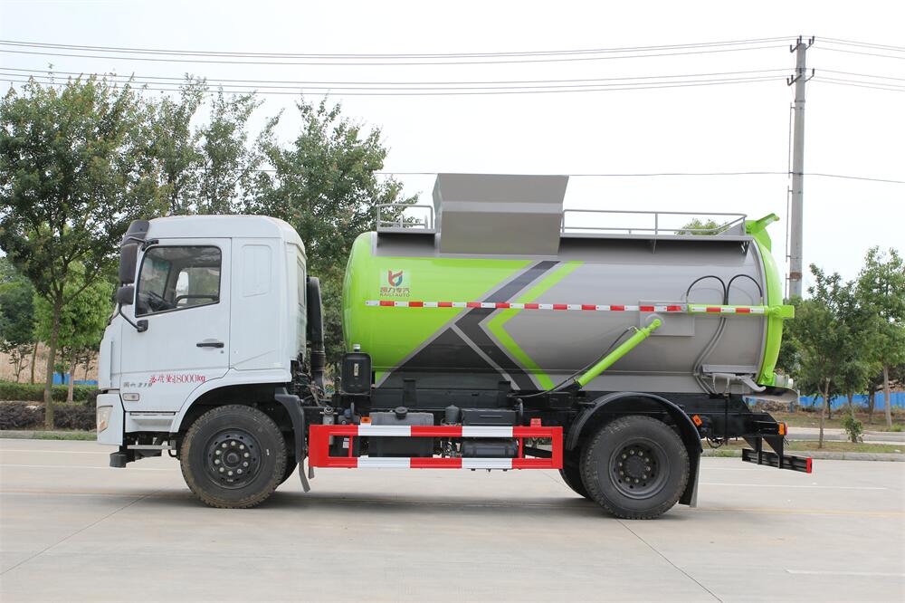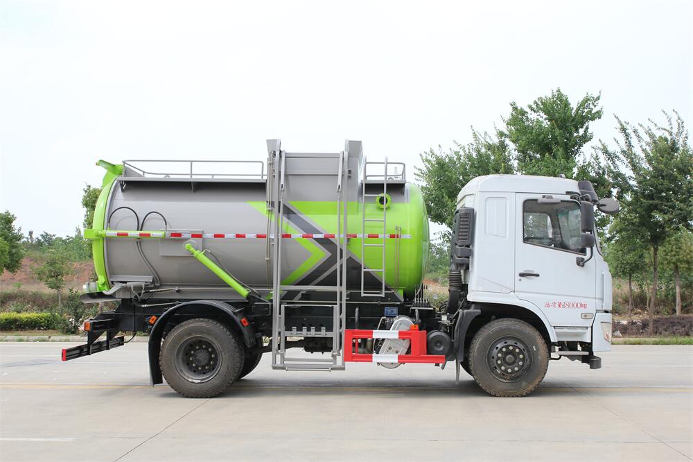 上裝配置:罐體容積10m3,配備120L/240L掛桶提升翻轉(zhuǎn)機構(gòu),液壓系統(tǒng),后蓋液壓鎖緊開啟,罐體可以舉升自卸,尾部帶自流閥;用于運輸液態(tài)垃圾,其特點操作簡單,密封性好,無泄漏,無異味;可選裝固液分離功能,推板擠壓功能,常用于餐館的垃圾轉(zhuǎn)運處理。