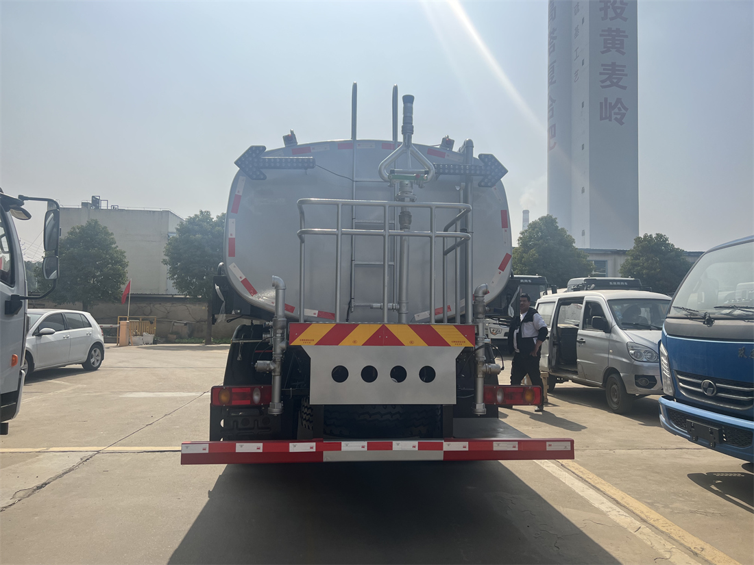灑水車前裝有鴨形噴嘴或圓頭沖嘴,后面裝有圓柱開灑水噴嘴或蓮蓬頭噴嘴,后部有一工作平臺,裝配有水炮。后部還可裝8個噴嘴(選裝)。