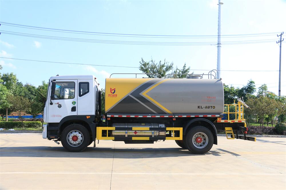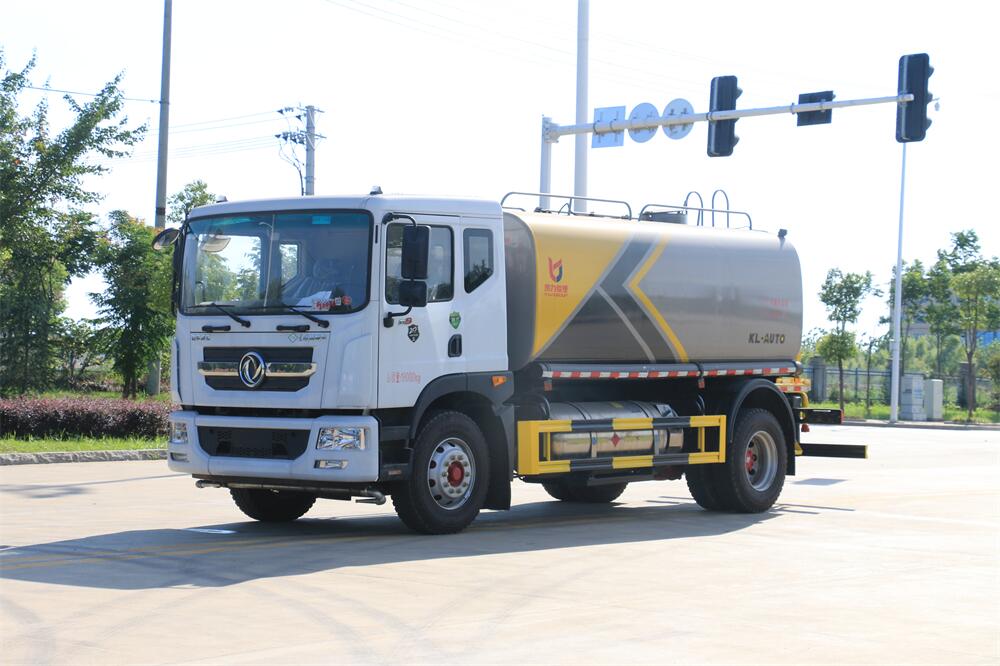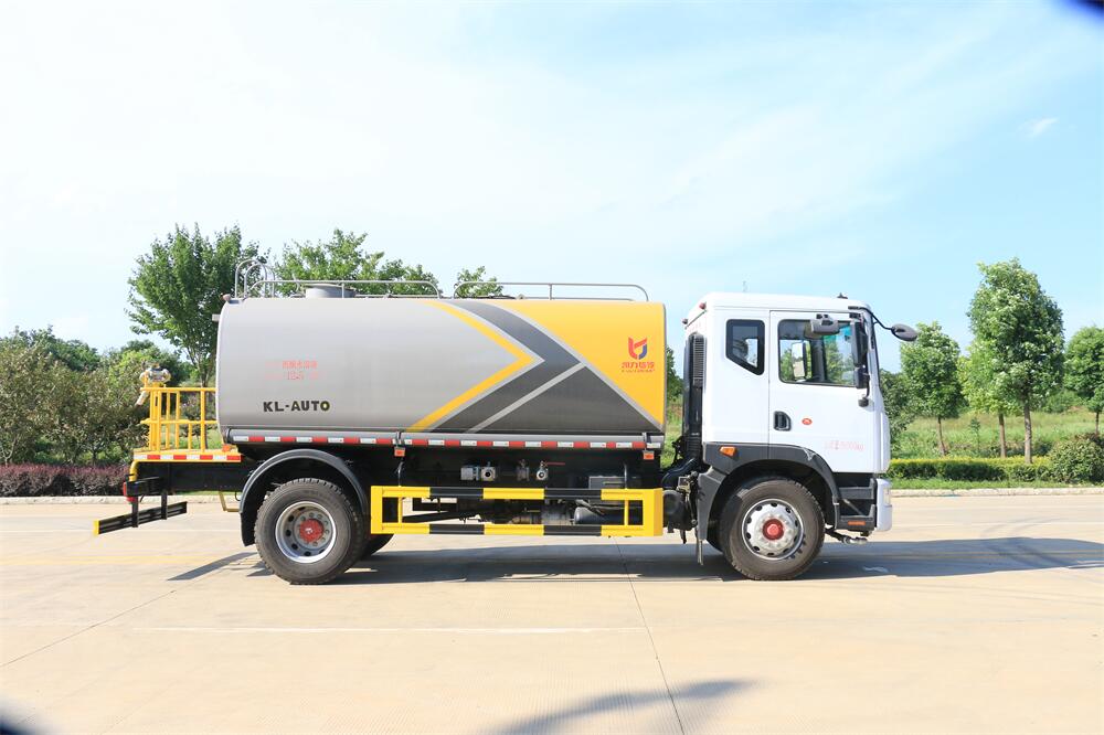 灑水車前裝有鴨形噴嘴或圓頭沖嘴,后面裝有圓柱開灑水噴嘴或蓮蓬頭噴嘴,后部有一工作平臺(tái),裝配有水炮。后部還可裝8個(gè)噴嘴(選裝)。