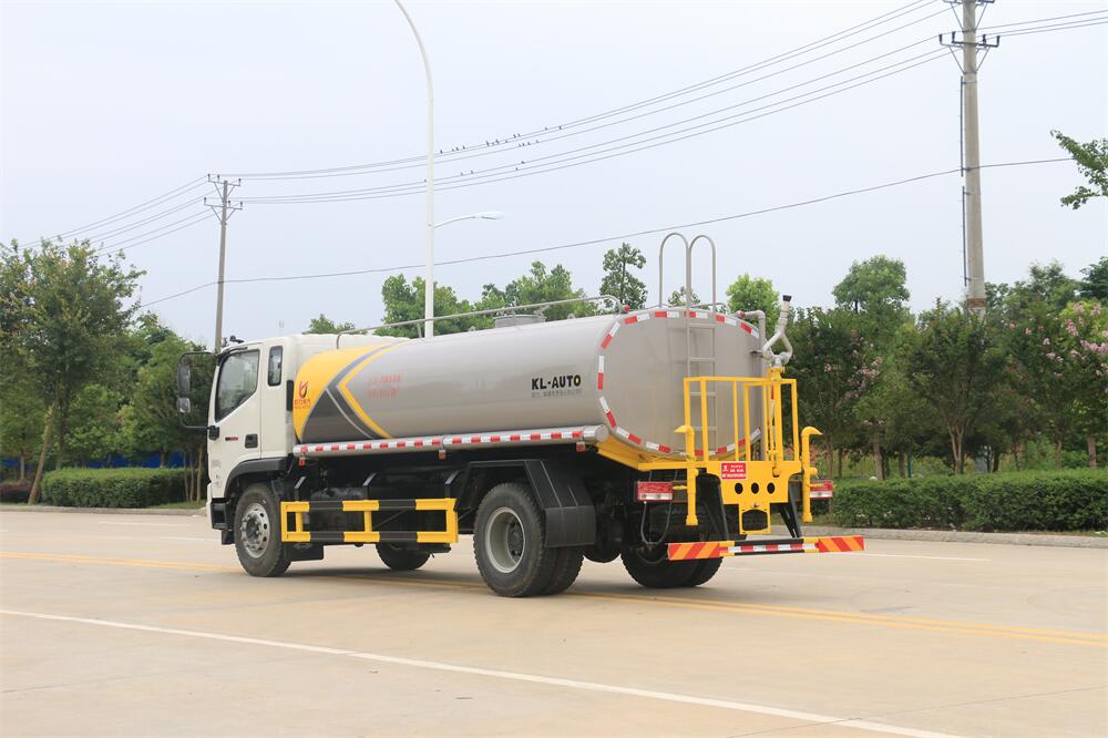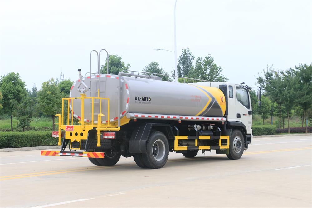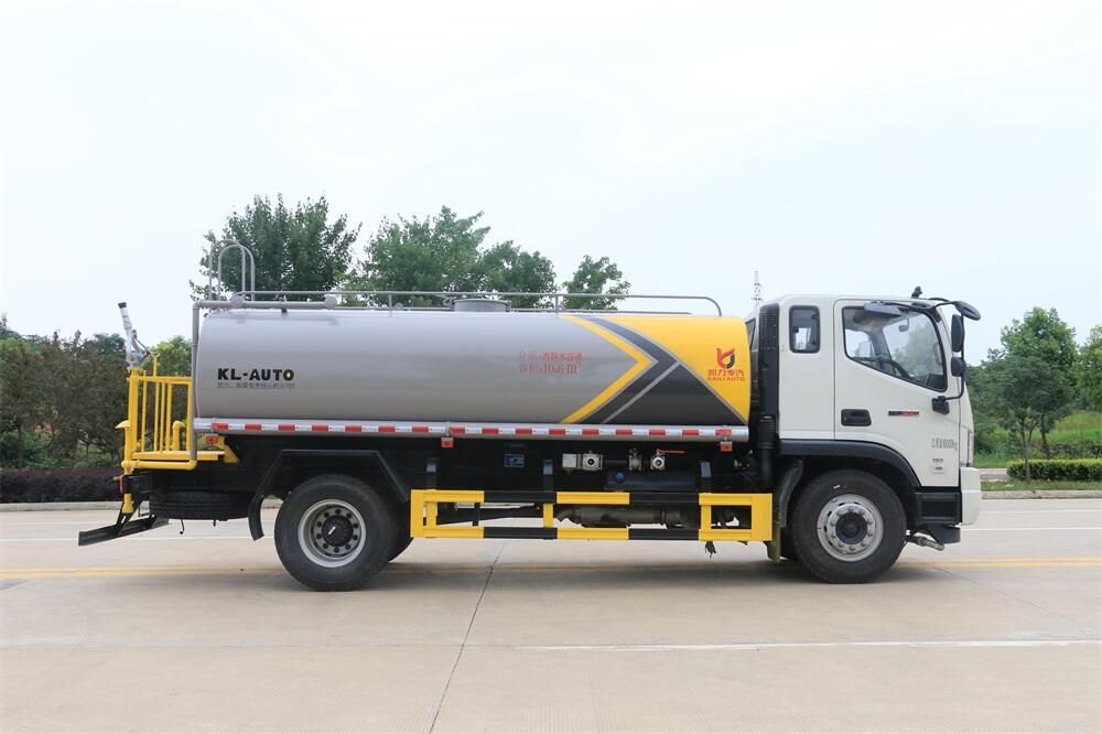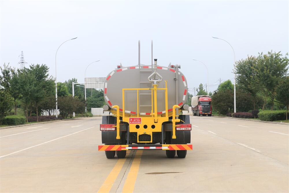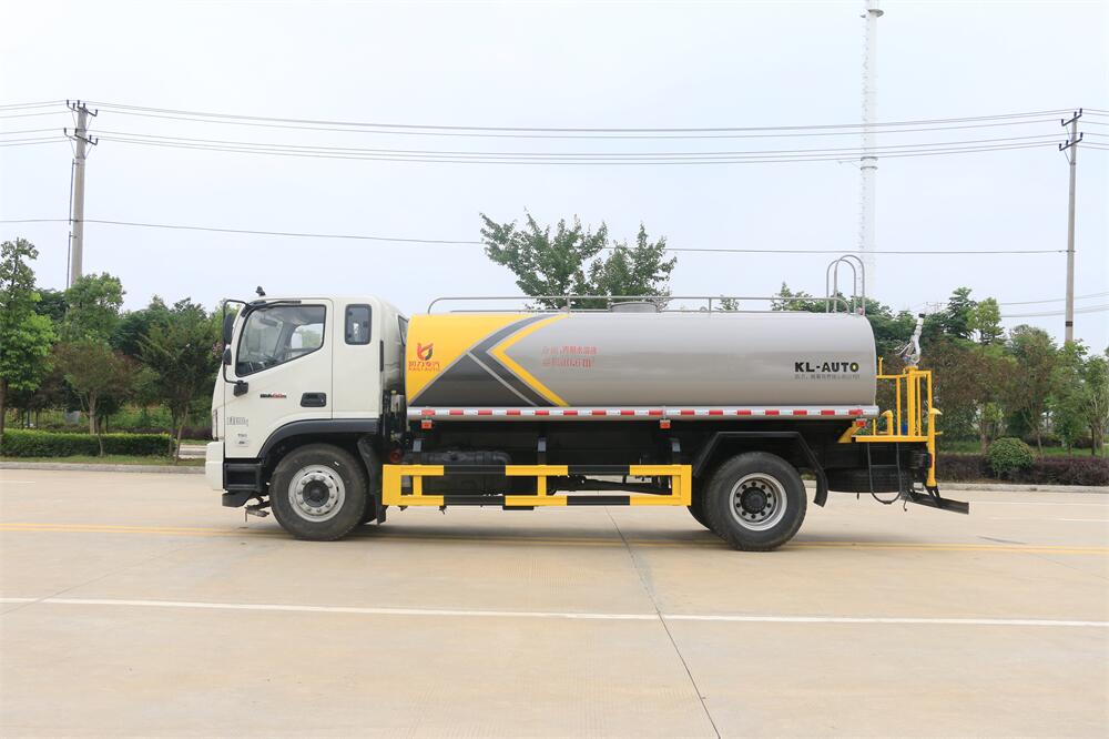 灑水車前裝有鴨形噴嘴或圓頭沖嘴,后面裝有圓柱開灑水噴嘴或蓮蓬頭噴嘴,后部有一工作平臺,裝配有水炮。后部還可裝8個(gè)噴嘴(選裝)。