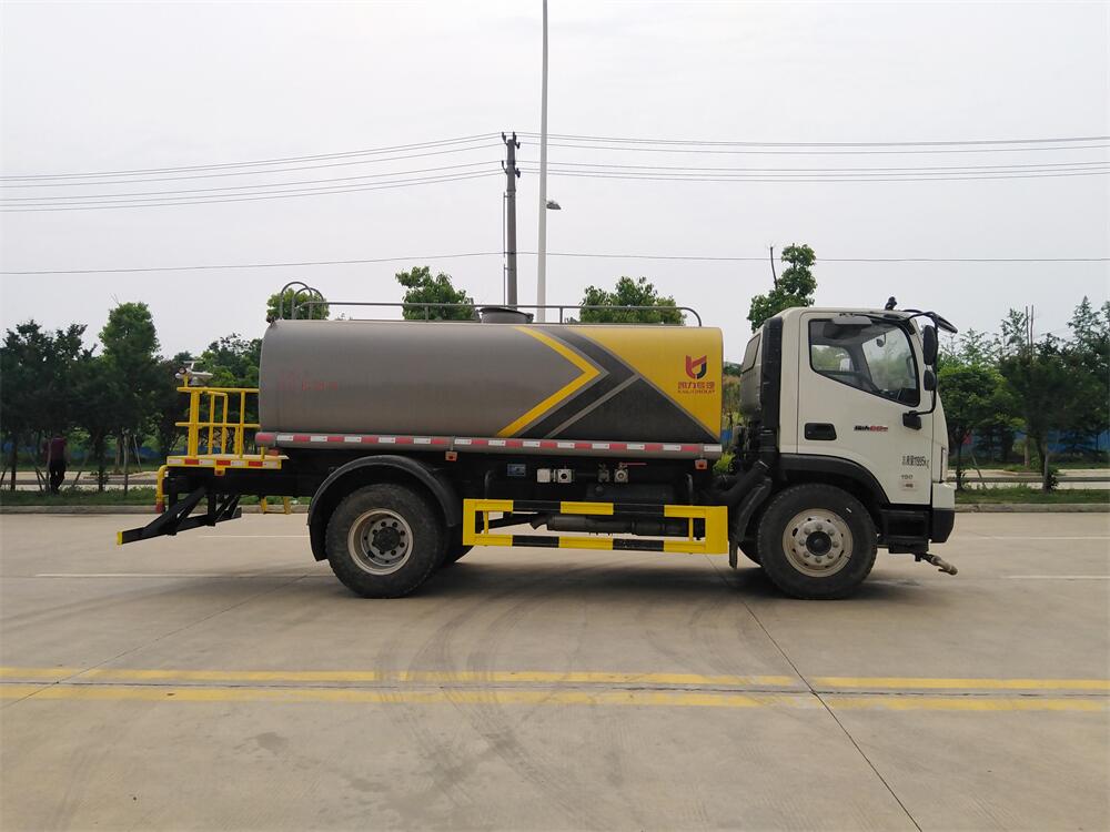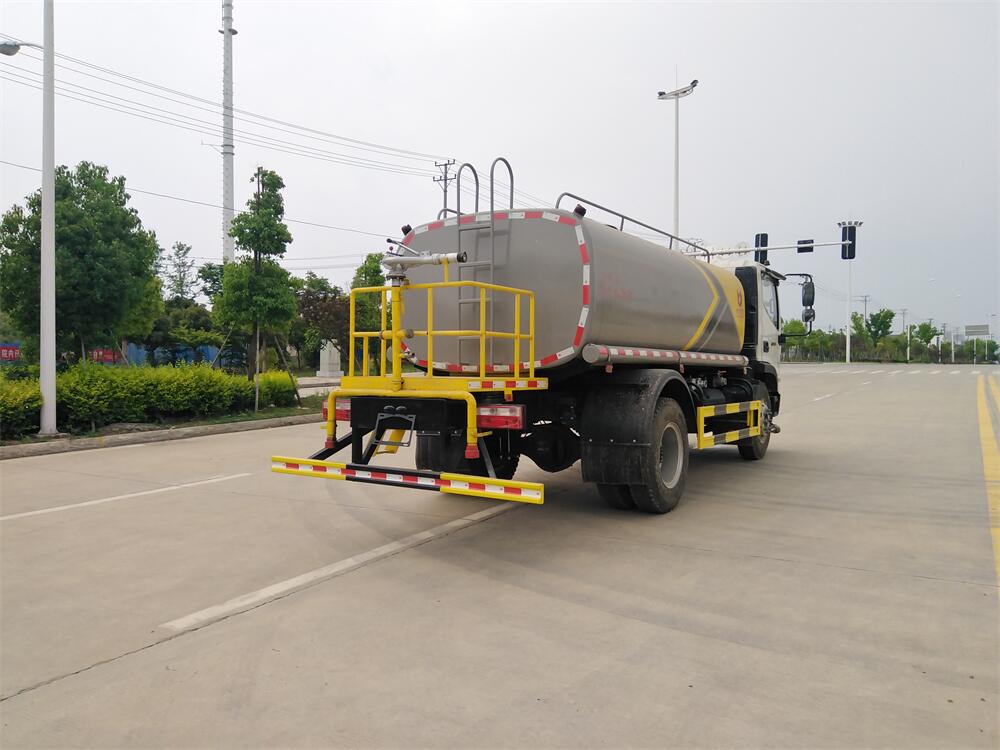 灑水車前裝有鴨形噴嘴或圓頭沖嘴,后面裝有圓柱開灑水噴嘴或蓮蓬頭噴嘴,后部有一工作平臺,裝配有水炮。后部還可裝8個噴嘴(選裝)。