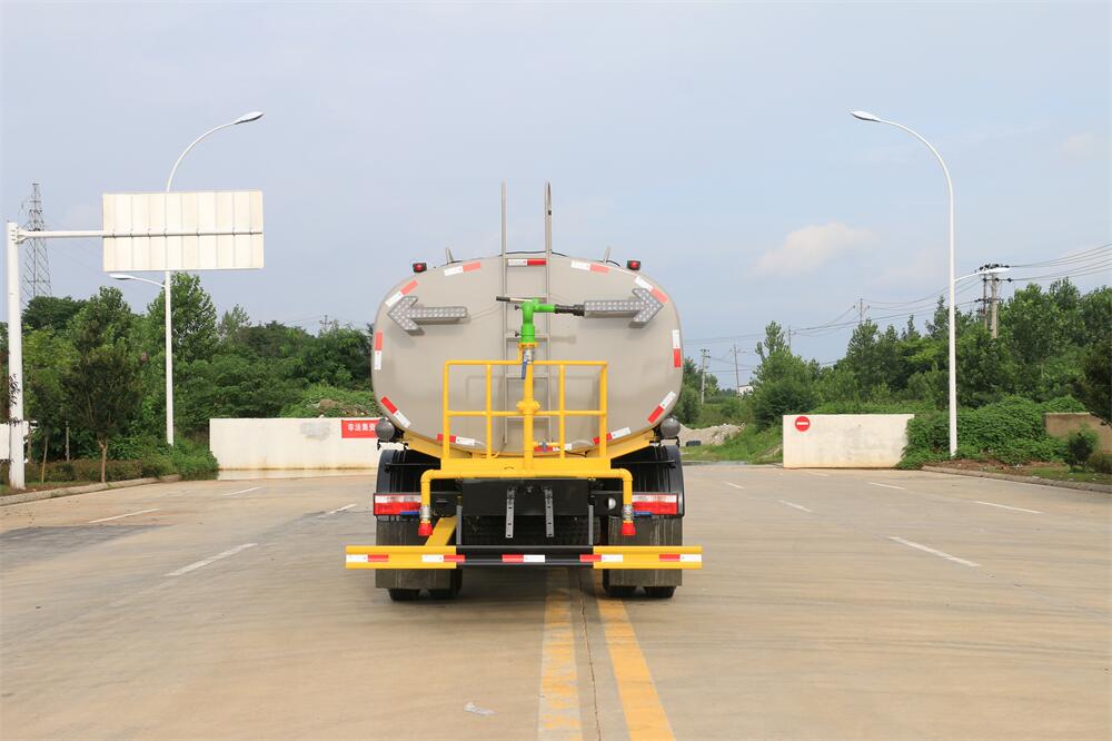 灑水車前裝有鴨形噴嘴或圓頭沖嘴,后面裝有圓柱開灑水噴嘴或蓮蓬頭噴嘴,后部有一工作平臺(tái),裝配有水炮。后部還可裝8個(gè)噴嘴(選裝)。