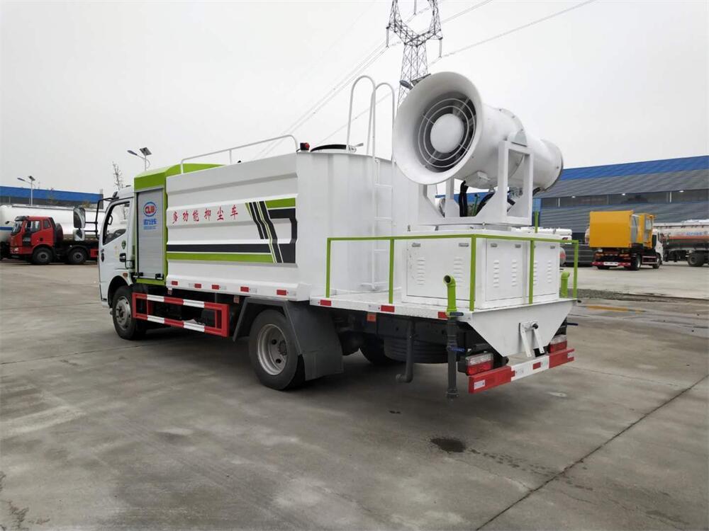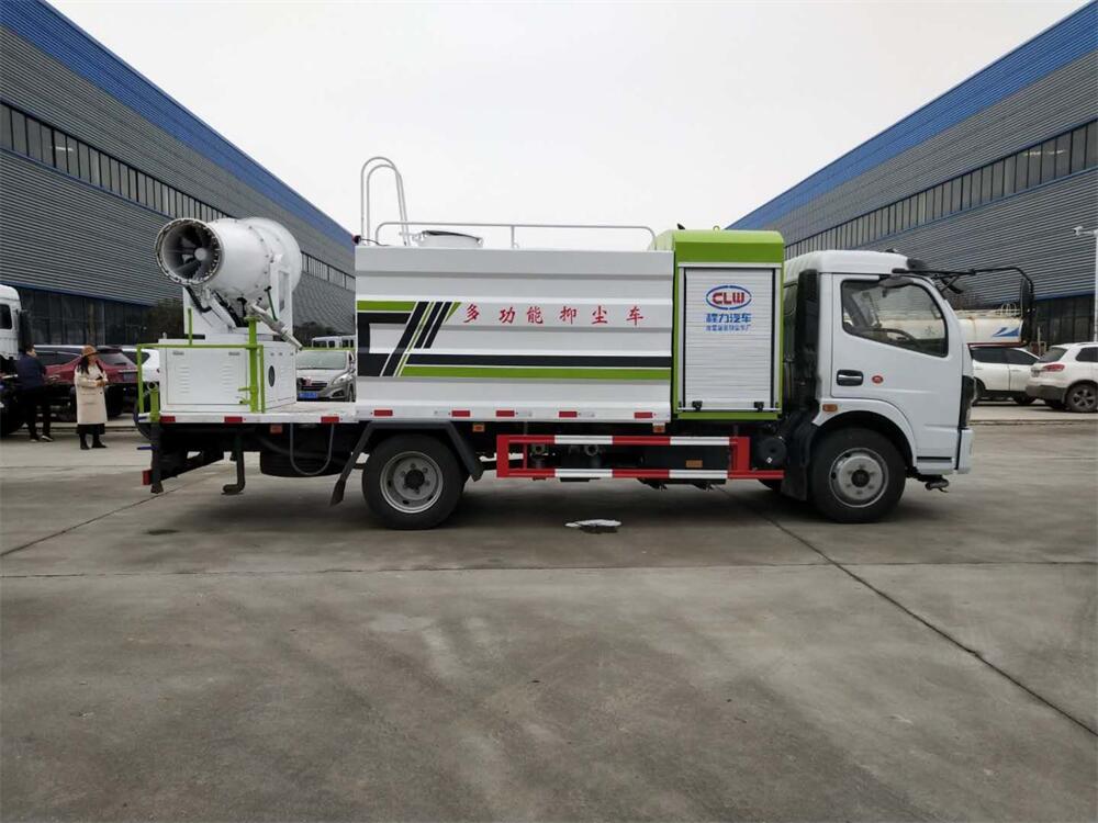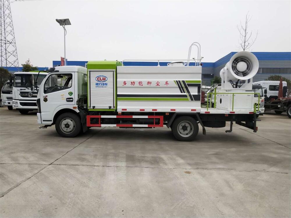 上裝配置:罐體容積為 8立方,選配風(fēng)送式霧炮機(jī)組射程30米、40米、50米、60米、80米、100米、120米霧炮,罐體鋼板為4mm碳鋼Q235材質(zhì),罐內(nèi)隔板具有防波作用,以減輕汽車行駛時(shí)罐體液體沖擊,罐體及整車外形尺寸按照公告。帶大功率專用灑水泵,泵可自吸自排,整車前沖、后灑、側(cè)噴、帶65消防接口,后平臺(tái)配CLW-50、CLW-60、CLW-80、CLW-100、CLW-120型風(fēng)送式霧炮機(jī)組;罐體前封頭配大功率柴油發(fā)電機(jī)組;前封頭帶水位計(jì),后平臺(tái)主管路帶1寸澆花接口,后爬梯。帶兩根輸水管及陰陽端。罐體顏色:銀/灰/綠,罐體兩側(cè)噴“多功能抑塵車”字樣,貼反光標(biāo)示。