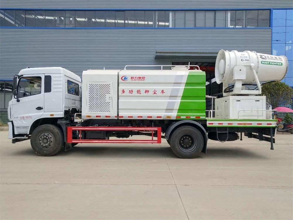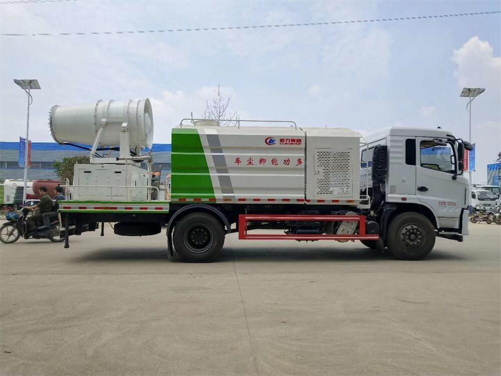 上裝配置:罐體容積為 12立方,選配風(fēng)送式霧炮機(jī)組射程30米、40米、50米、60米、80米、100米、120米霧炮,罐體鋼板為4mm碳鋼Q235材質(zhì),罐內(nèi)隔板具有防波作用,以減輕汽車行駛時(shí)罐體液體沖擊,罐體及整車外形尺寸按照公告。帶大功率專用灑水泵,泵可自吸自排,整車前沖、后灑、側(cè)噴、帶65消防接口,后平臺(tái)配CLW-50、CLW-60、CLW-80、CLW-100、CLW-120型風(fēng)送式霧炮機(jī)組;罐體前封頭配大功率柴油發(fā)電機(jī)組;前封頭帶水位計(jì),后平臺(tái)主管路帶1寸澆花接口,后爬梯。帶兩根輸水管及陰陽端。罐體顏色:銀/灰/綠,罐體兩側(cè)噴“多功能抑塵車”字樣,貼反光標(biāo)示。