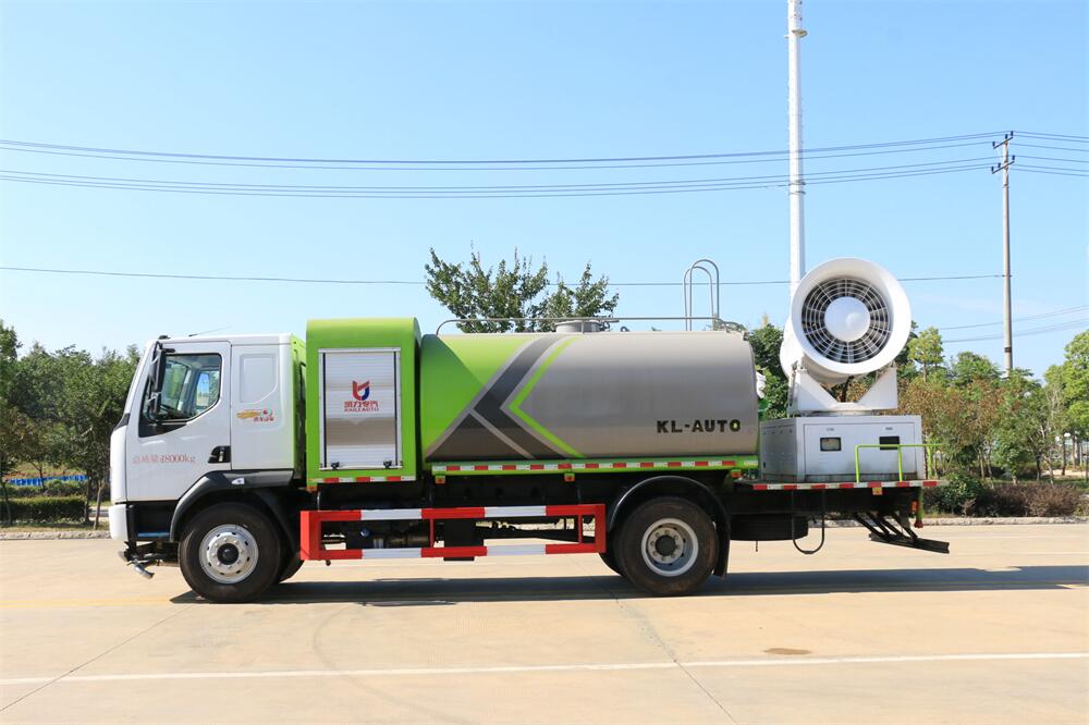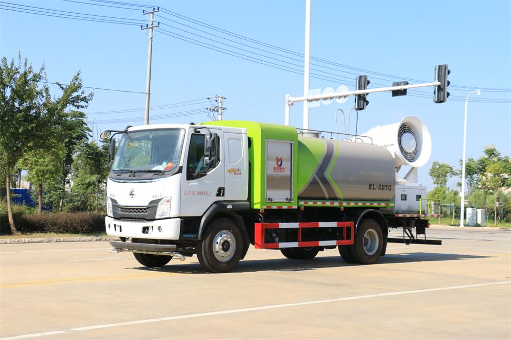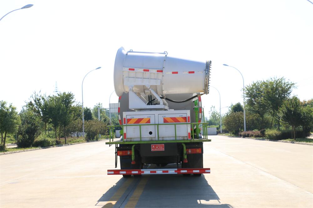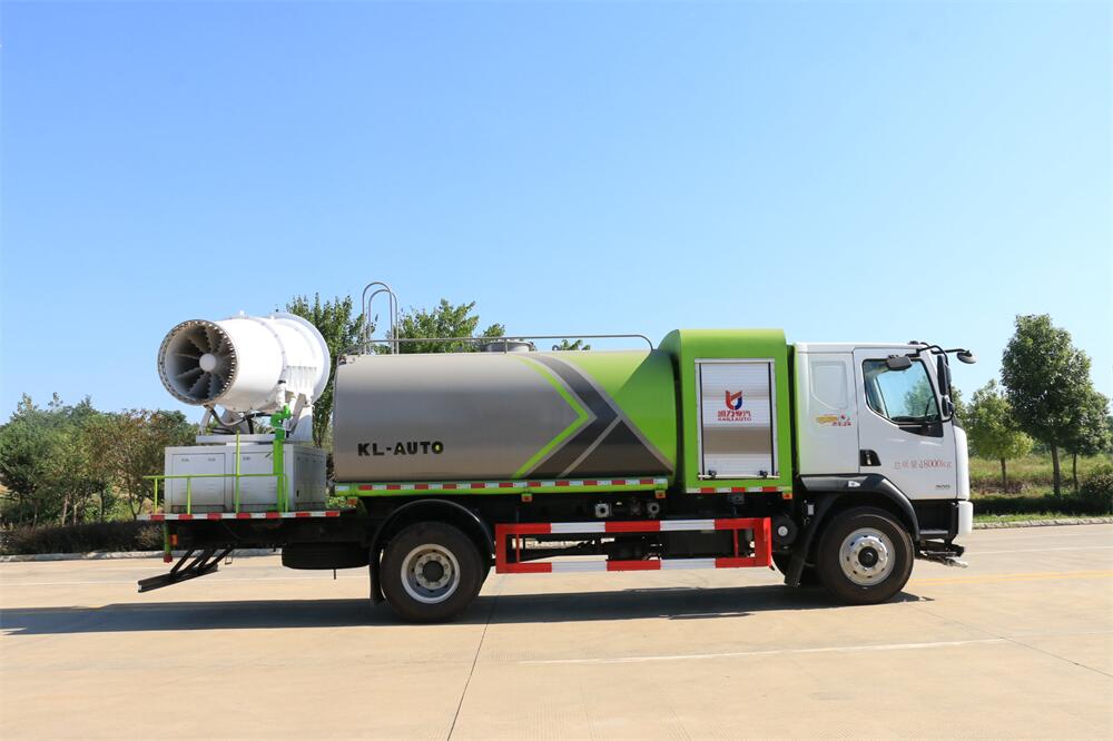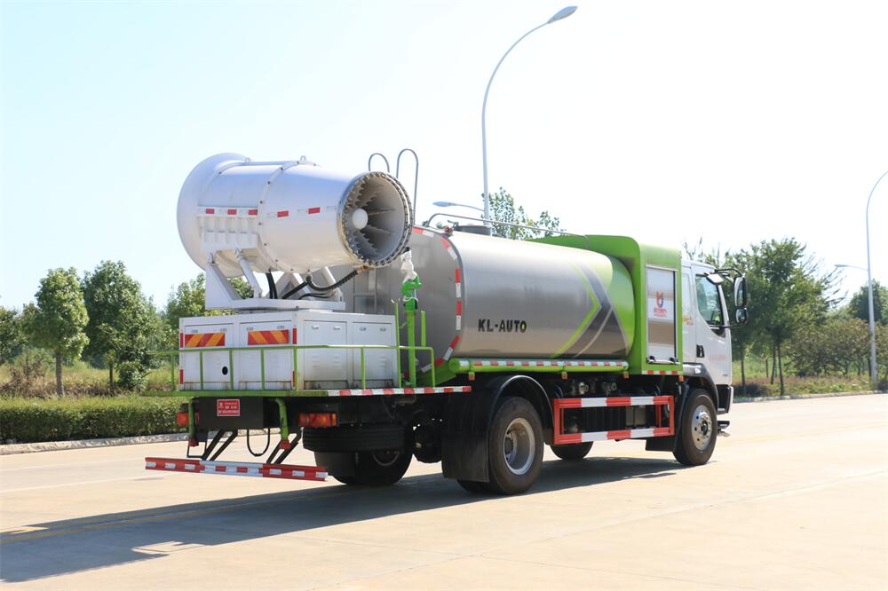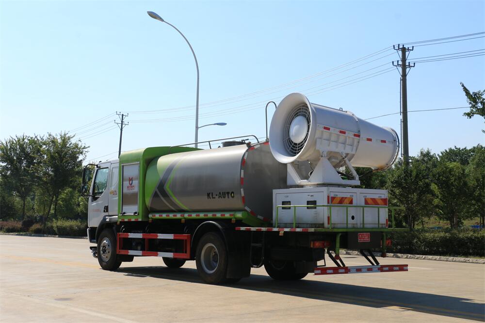 上裝配置:罐體容積為 12立方,選配風(fēng)送式霧炮機(jī)組射程30米、40米、50米、60米、80米、100米、120米霧炮,罐體鋼板為4mm碳鋼Q235材質(zhì),罐內(nèi)隔板具有防波作用,以減輕汽車行駛時(shí)罐體液體沖擊,罐體及整車外形尺寸按照公告。帶大功率專用灑水泵,泵可自吸自排,整車前沖、后灑、側(cè)噴、帶65消防接口,后平臺(tái)配CLW-50、CLW-60、CLW-80、CLW-100、CLW-120型風(fēng)送式霧炮機(jī)組;罐體前封頭配大功率柴油發(fā)電機(jī)組;前封頭帶水位計(jì),后平臺(tái)主管路帶1寸澆花接口,后爬梯。帶兩根輸水管及陰陽(yáng)端。罐體顏色:銀/灰/綠,罐體兩側(cè)噴“多功能抑塵車”字樣,貼反光標(biāo)示。