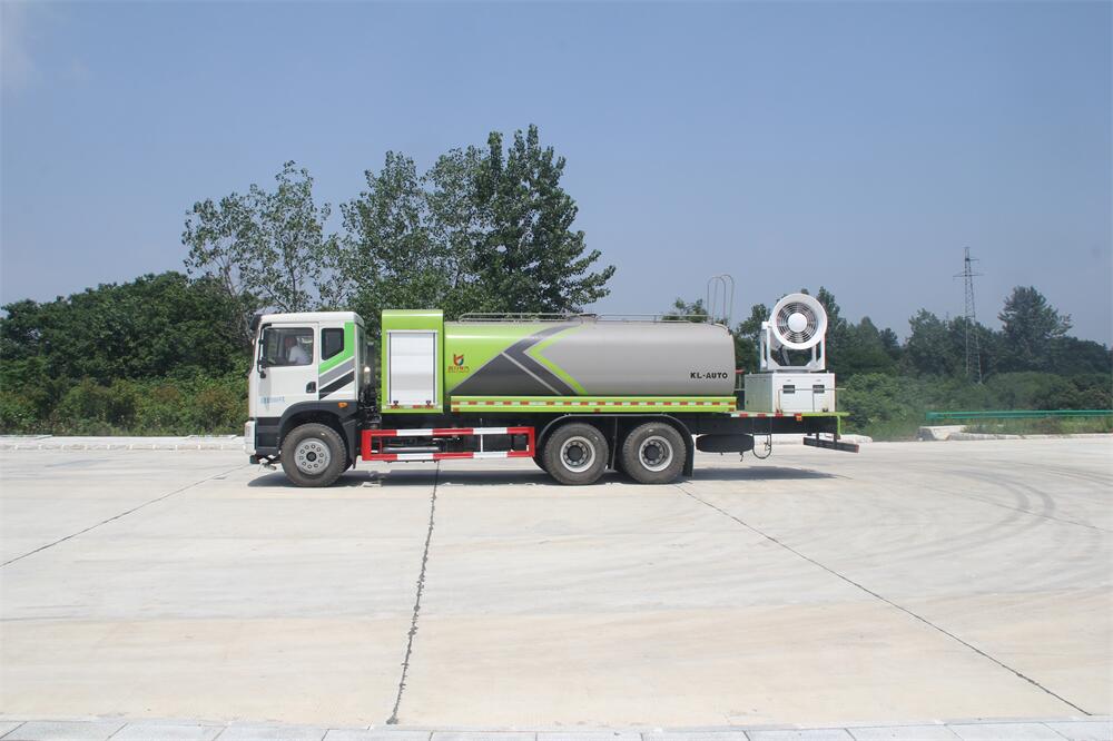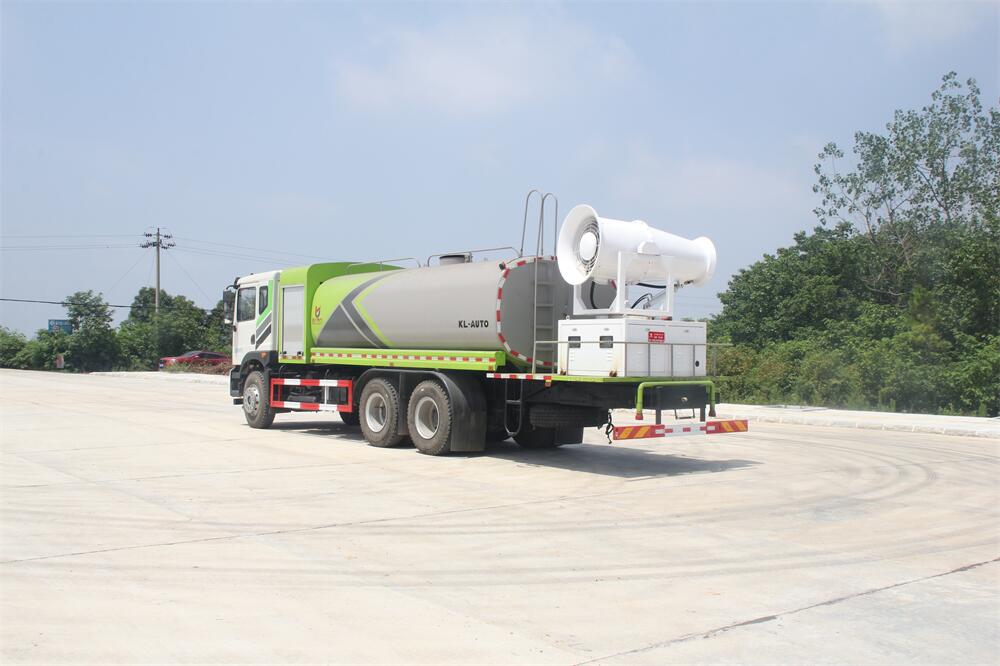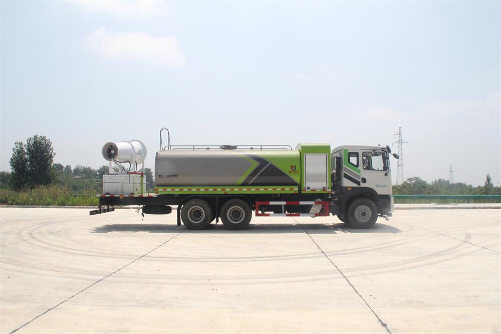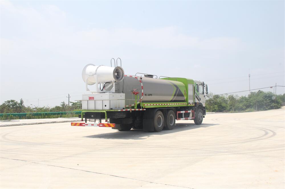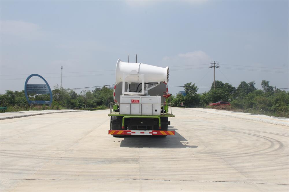上裝配置:罐體容積為 16立方,選配風(fēng)送式霧炮機(jī)組射程30米、40米、50米、60米、80米、100米、120米霧炮,罐體鋼板為4mm碳鋼Q235材質(zhì),罐內(nèi)隔板具有防波作用,以減輕汽車行駛時罐體液體沖擊,罐體及整車外形尺寸按照公告。帶大功率專用灑水泵,泵可自吸自排,整車前沖、后灑、側(cè)噴、帶65消防接口,后平臺配CLW-50、CLW-60、CLW-80、CLW-100、CLW-120型風(fēng)送式霧炮機(jī)組;罐體前封頭配大功率柴油發(fā)電機(jī)組;前封頭帶水位計,后平臺主管路帶1寸澆花接口,后爬梯。帶兩根輸水管及陰陽端。罐體顏色:銀/灰/綠,罐體兩側(cè)噴“多功能抑塵車”字樣,貼反光標(biāo)示。
