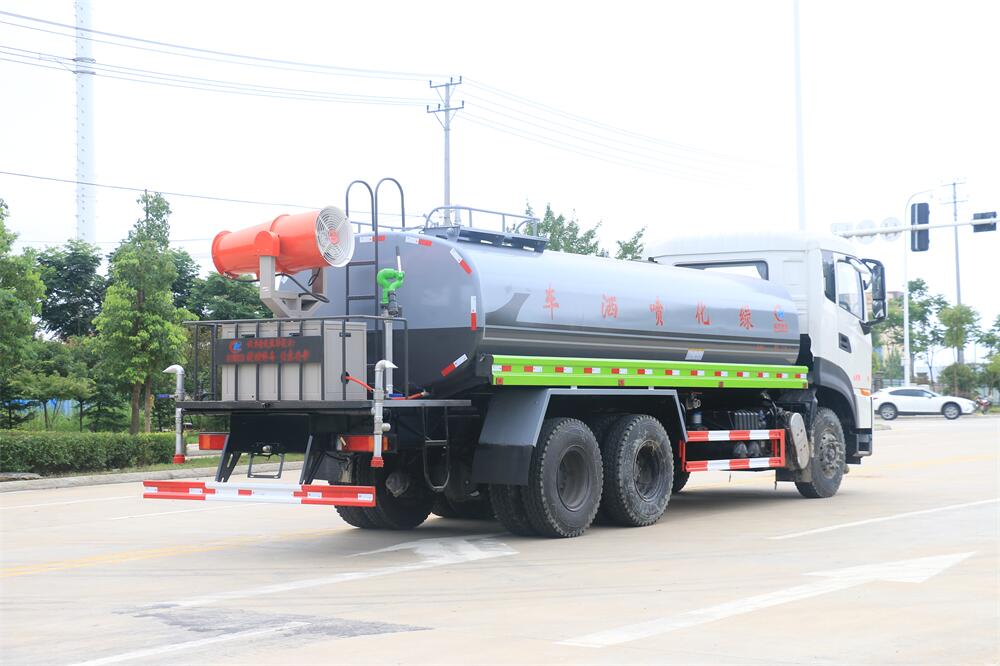 上裝配置:罐體容積 18-20立方,風(fēng)送式霧炮機(jī)組30米,40米選擇,罐體采用國(guó)標(biāo)Q235碳鋼材質(zhì),罐體厚度4MM,前后封頭5MM加厚型,罐體內(nèi)雙層隔板具有防波蕩作用,以減輕汽車(chē)行駛時(shí)罐內(nèi)液體沖擊;灑水車(chē)整車(chē)及外形尺寸嚴(yán)格按照**機(jī)動(dòng)車(chē)公告制作而成;裝配大功率專用灑水泵,前沖、后灑、側(cè)噴、后平臺(tái)帶綠化灑水炮,灑水炮可全方位旋轉(zhuǎn),可連續(xù)調(diào)成直沖狀、大雨、小雨、毛毛雨;配消防接口,自流閥,濾網(wǎng),帶自吸自排功能。前封頭帶水位計(jì),后平臺(tái)主管路帶1寸澆花接口,后爬梯,帶1個(gè)消防接頭,帶1個(gè)自流閥,1個(gè)過(guò)濾裝置,其余標(biāo)配。