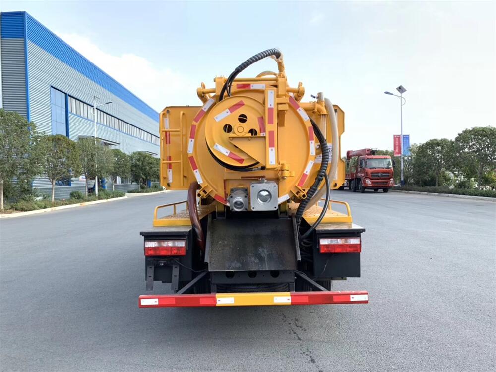 配置SK-9水循環(huán)泵(可選裝油泵、杭州威龍泵)國產(chǎn)天津240KG/170流量高壓泵(可選裝進(jìn)口高壓泵),60米19高壓管,8米吸污管一根,十個(gè)高強(qiáng)度噴頭,后一個(gè)100進(jìn)污口,一個(gè)150排污口,罐體可舉升,后蓋可液壓開啟,全套為液壓操控,加大工具箱、視糞窗上帶球閥,一個(gè)洗手小球閥、兩個(gè)消防接口、兩個(gè)泄壓閥、加寬平臺(tái)、防溢閥,真空泵帶油水分離器,帶洗手裝置,管道清洗裝置,冬季吹水裝置。