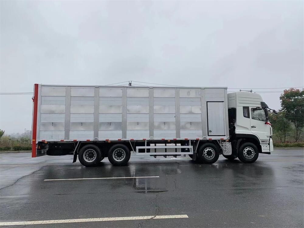 總質(zhì)量31噸,整備質(zhì)量15.5噸,額定載質(zhì)量15.3噸,整車長度11.8-12米,寬度2.5-2.55米,高度3.9-3.98米,貨箱長度8.3-9.3米,箱體鋁合金制作,上中下三層,帶噴淋,喂食功能,可開關(guān)側(cè)窗,高轉(zhuǎn)速防風(fēng)通風(fēng)換氣扇。后部帶液壓升降尾板,可遠(yuǎn)程**。副車架部分采用高強(qiáng)度鋼,能更好應(yīng)對顛簸路面。帶一套備用發(fā)電機(jī)。配備冷暖空調(diào),采用全新通風(fēng)設(shè)計(jì),保證前后溫度一致。空氣清新,恒溫,有效保證畜禽成活率。設(shè)計(jì)合理,堅(jiān)固耐用,箱體內(nèi)部清洗方便,無死角,無夾縫。讓消毒更徹底。