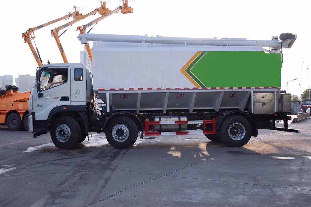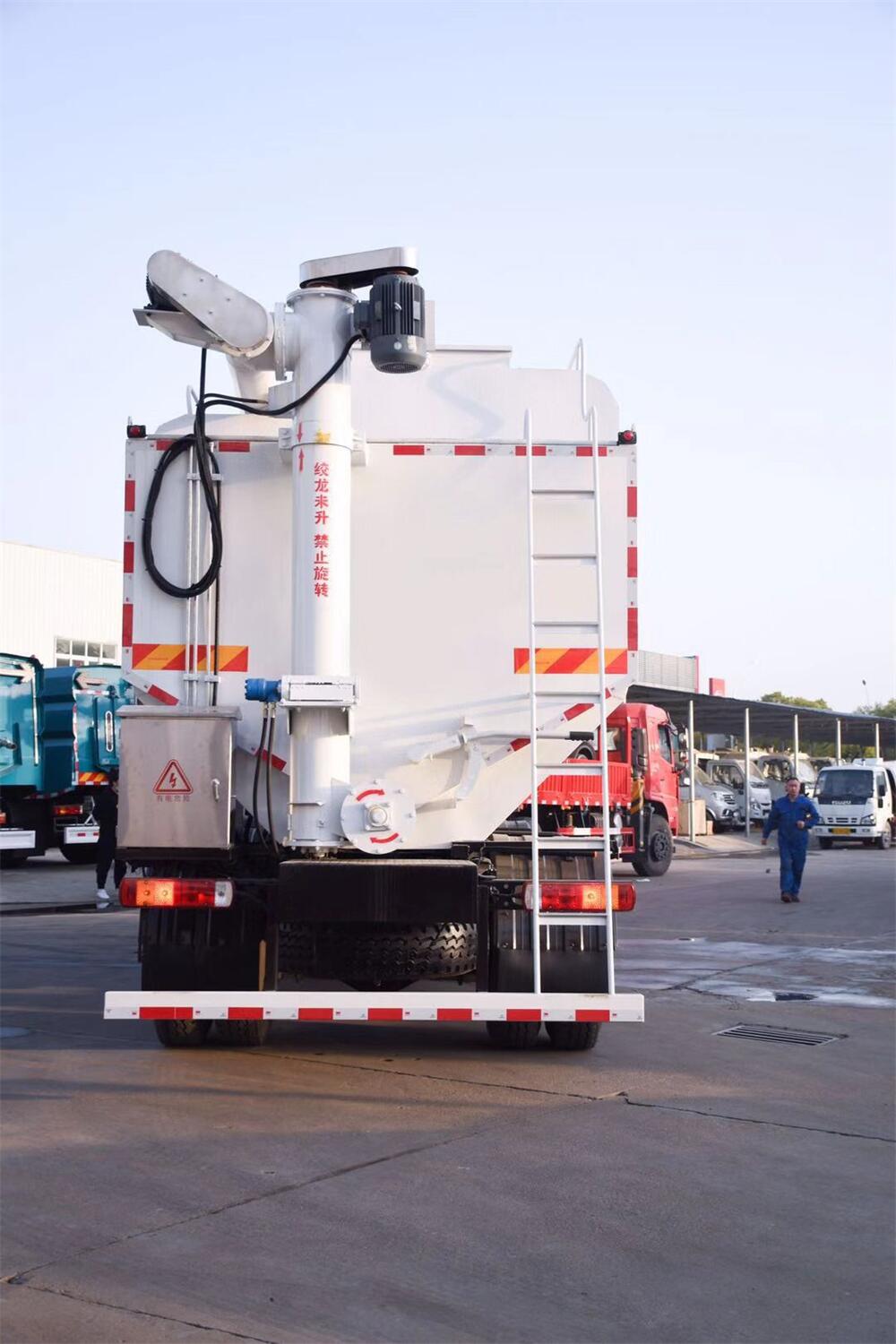 罐體配置:罐體采用2mm輕量化鋼板,整車3條絞龍(水平,垂直,出料),出料絞龍用液壓**舉升,可左右旋轉(zhuǎn)180度。罐體內(nèi)分為4個倉,可以****各分倉卸料順序和速度。