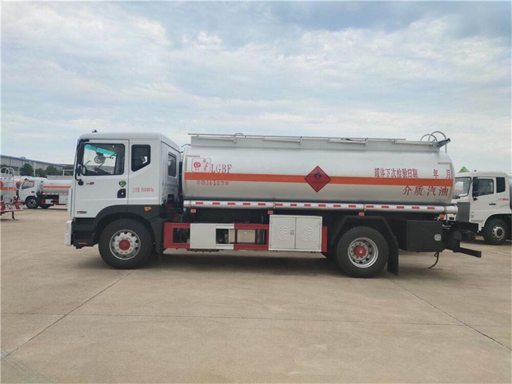 上裝配置: 嚴格按照公告尺寸制作,罐體公告容積:14.5立方,實際容積15立方,上戶噸位:9735KG,介質:汽油。單倉,罐體為碳鋼制作,罐體厚度5mm(≧4.2mm),封頭5mm(≧4.2mm)厚,帶油車專用自吸自排泵,2個歐標罐口,1個海底閥,1個防溢流探桿,1個下裝油口,1個油氣回收接頭,整車管道及球級出口為3寸,配一個防火帽,兩根與罐體等長的輸油管,兩個滅火器,其余廠內(nèi)標配。顏色:銀粉,帶3M反光標及反光帶 。