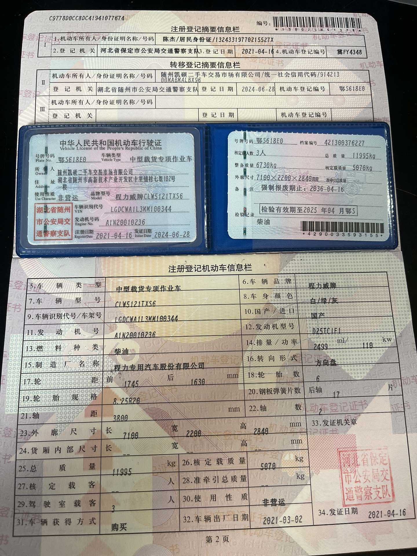 1??車型:國(guó)六9方壓縮垃圾車 2??年份:2021年6月 3??發(fā)動(dòng)機(jī):朝柴170馬力,國(guó)六 4??底盤配置:東風(fēng)凱普特底盤,3800軸距,六檔變速箱,245