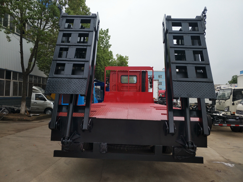 上裝采用八毫米花紋鋼板,120套100方管做橫梁,加強(qiáng)雙簧爬梯,可拉25噸以下挖機(jī)。