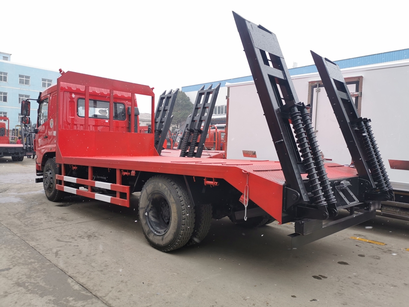 上裝采用5毫米花紋鋼板,120*120方鋼做橫梁,加強(qiáng)型雙爬梯.可定做液壓爬梯,可承載15噸以下挖機(jī)。也可加裝絞盤,可拉事故車等。公告拓展有雙節(jié)爬梯公告,可做雙節(jié)爬梯拉叉車,壓路機(jī)等鉆井設(shè)備!