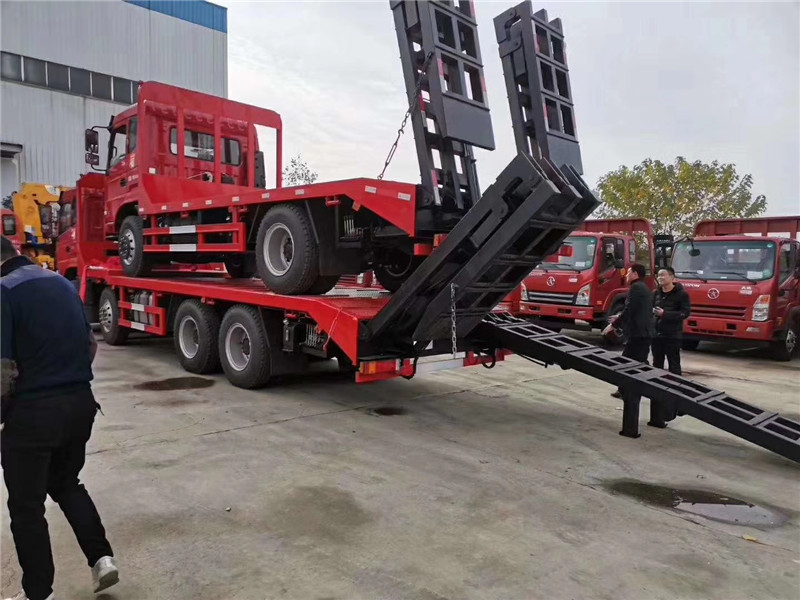上裝采用八毫米花紋鋼板,120套100方管做橫梁,加強雙簧爬梯,可拉25噸以下挖機。