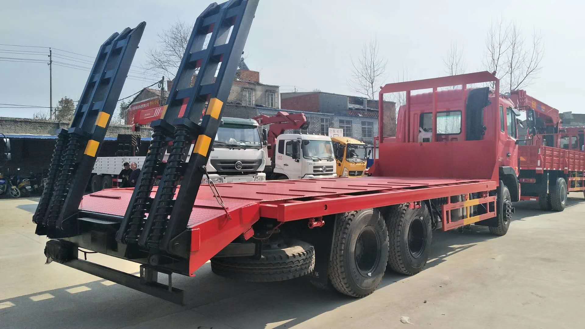上裝采用八毫米花紋鋼板,120套100方管做橫梁,加強(qiáng)雙簧爬梯,可拉30噸以下挖機(jī)。