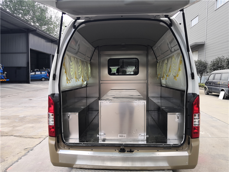 產品簡介 1. 主要配置:前空調,前暖風,電動車窗,ABS+EBD, 遙控鑰匙2. 改裝部分采用304L不銹鋼制作,中間不銹鋼隔墻安裝拉窗,不銹鋼地板,不銹鋼常溫棺不銹鋼擔架,加兩側玻璃下不銹鋼裝飾,根據您的要求設計改裝方案,模板一次成型,隔墻密封,拒串味??梢詮S家自提,也可以付定金貨到付款。(冰棺選裝,后空調選裝,可視系統(tǒng)選裝,對講系統(tǒng)選裝)