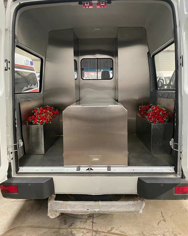 產(chǎn)品簡(jiǎn)介 | 1. 主要配置:空調(diào),暖風(fēng),前電動(dòng)車(chē)窗,安全氣囊,ABS,遙控鑰匙 2. 改裝部分采用304L不銹鋼制作,中間不銹鋼隔墻安裝拉窗,不銹鋼地板,不銹鋼常溫棺不銹鋼擔(dān)架,加兩側(cè)玻璃下不銹鋼裝飾 |